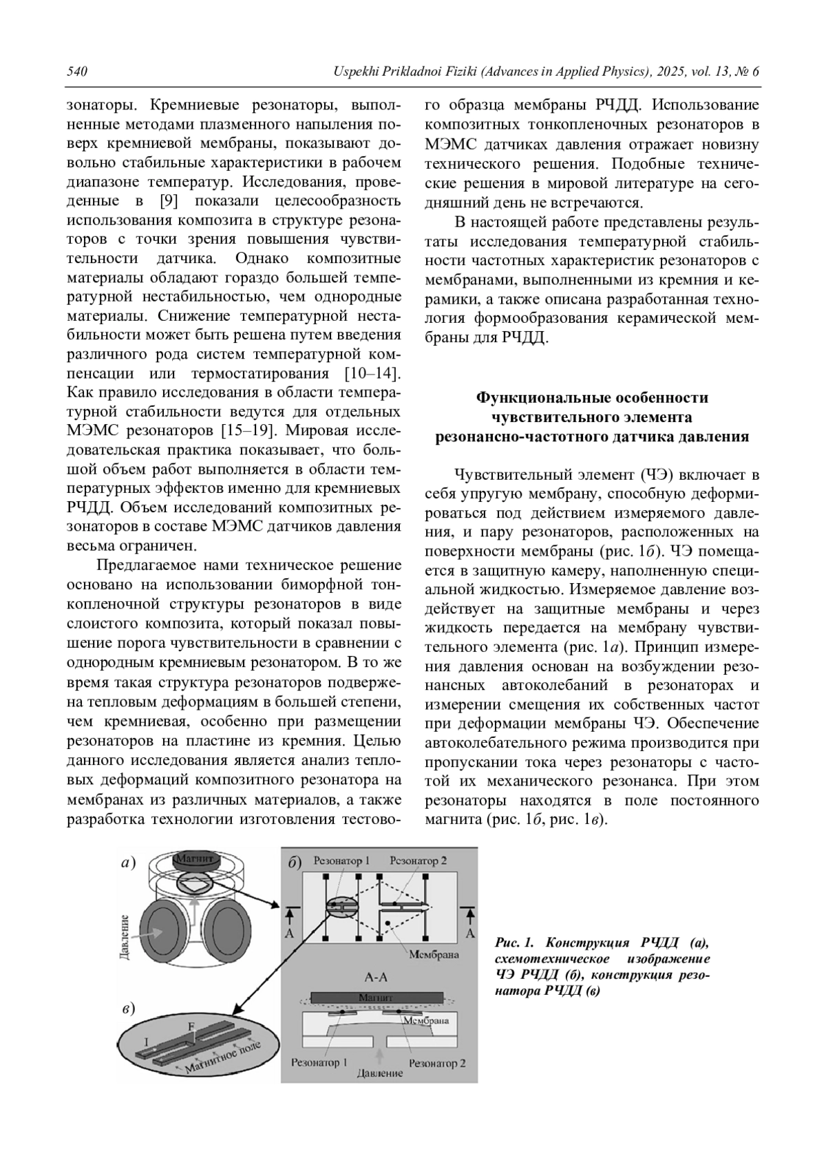 Статья: Исследования керамической мембраны резонансно-частотного датчика давления (2025)