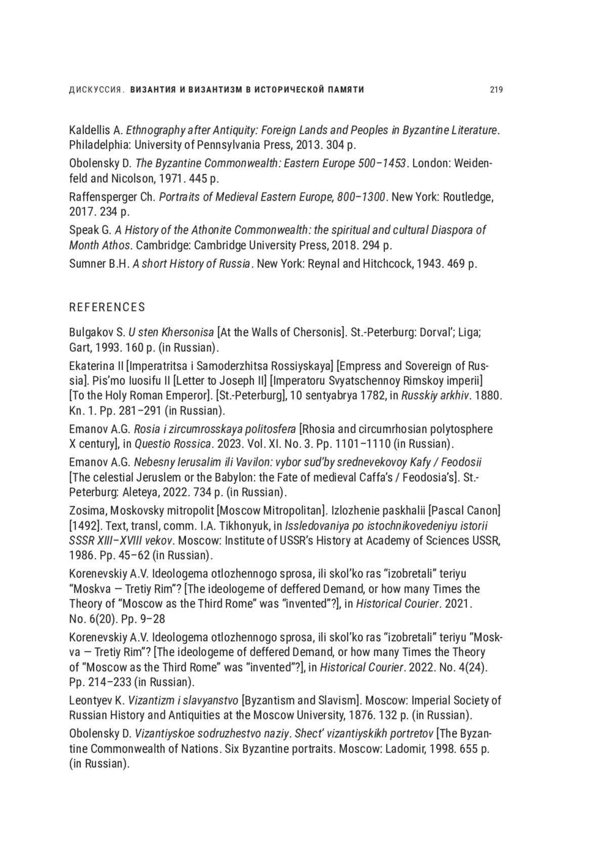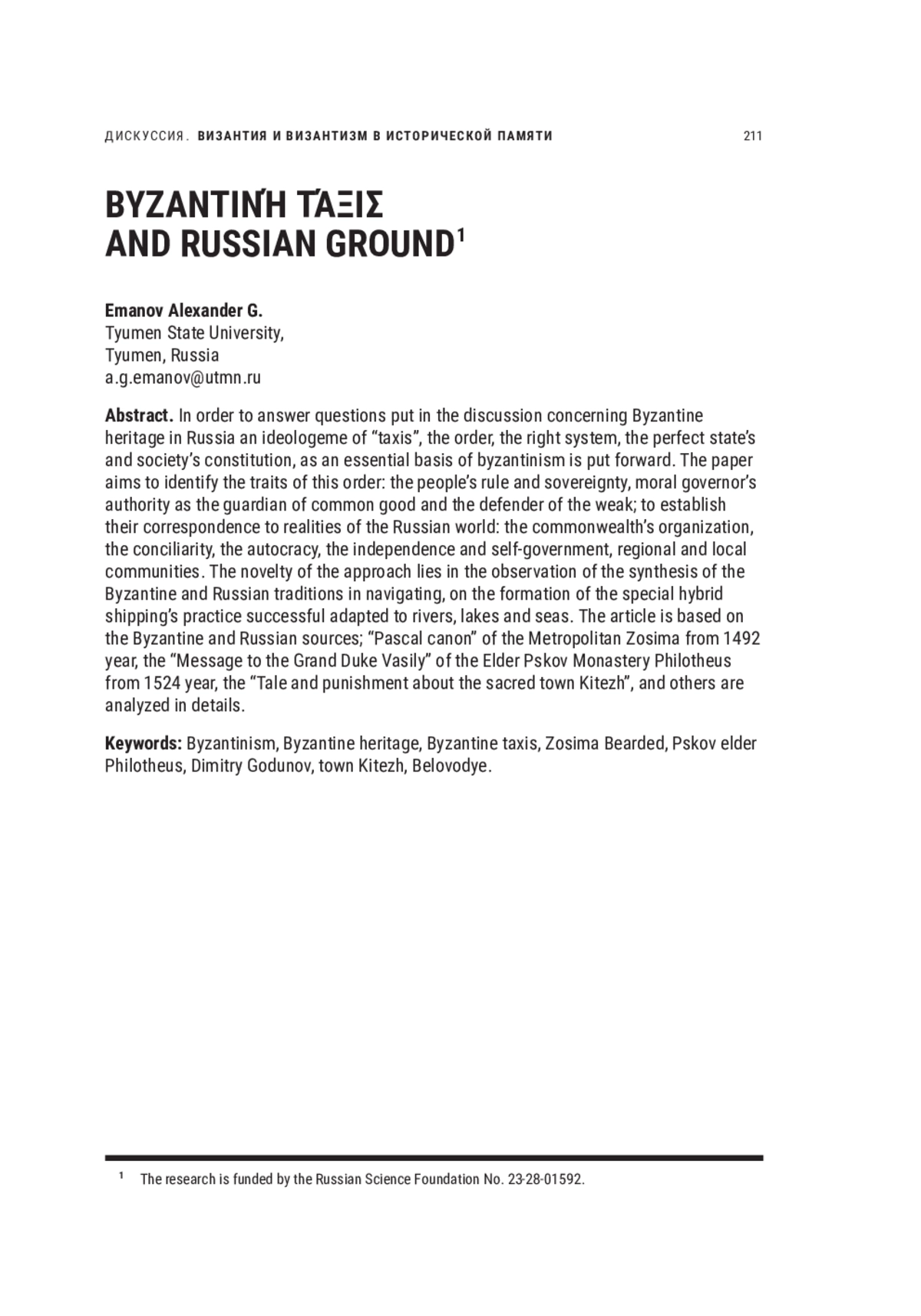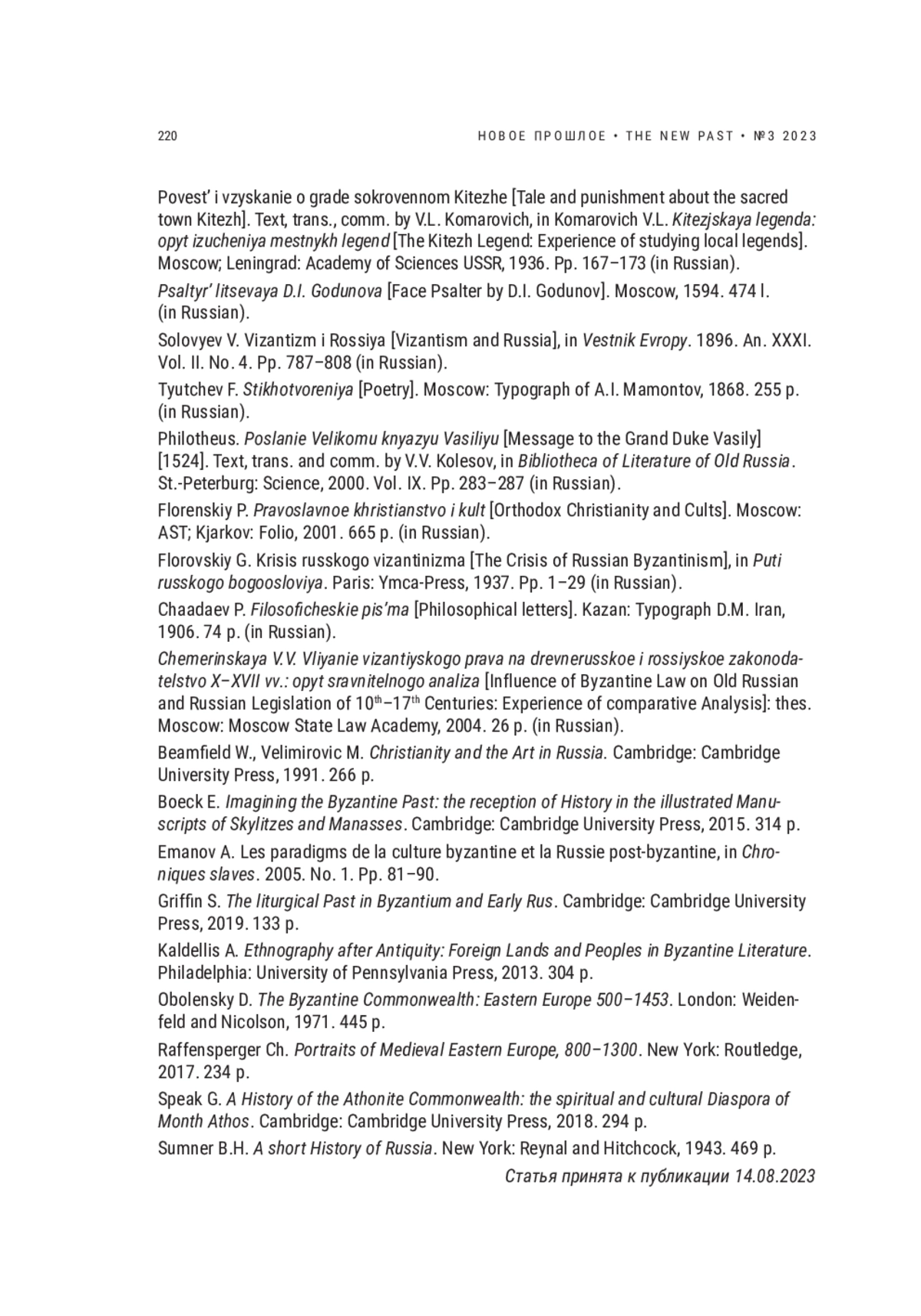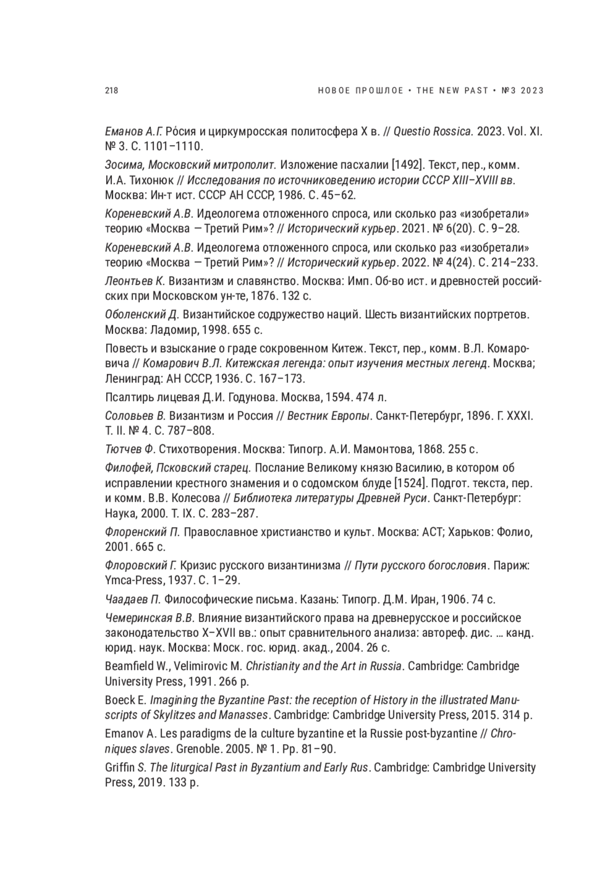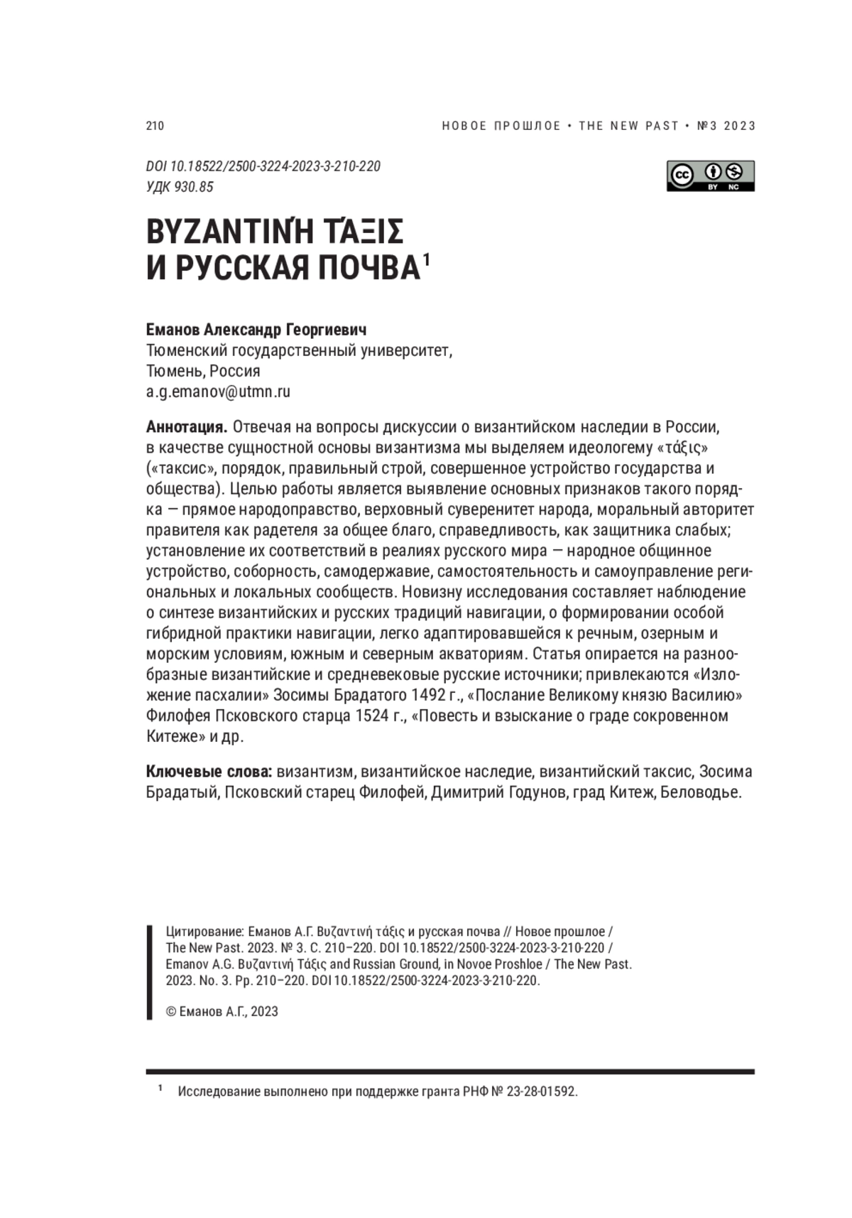 ЕМАНОВ А. Г. BYZANTINH ТАЕН И РУССКАЯ ПОЧВА // НОВОЕ ПРОШЛОЕ. 2023. № 3