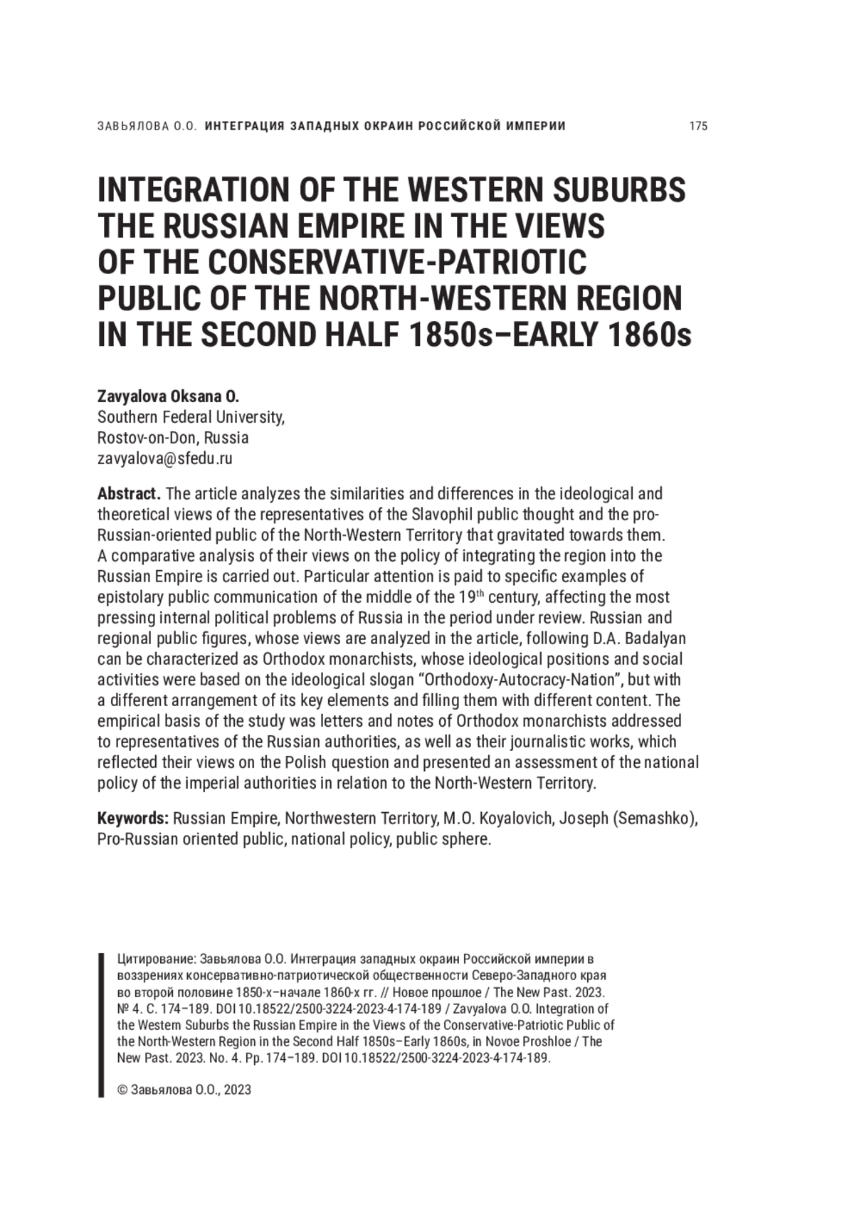 29. Kotov A.E. West-Russian Publicists of the 19th Century // Novoe Proshloe / The New Past. 2022. № 2. Pp. 60-76. EDN: KZVFKV