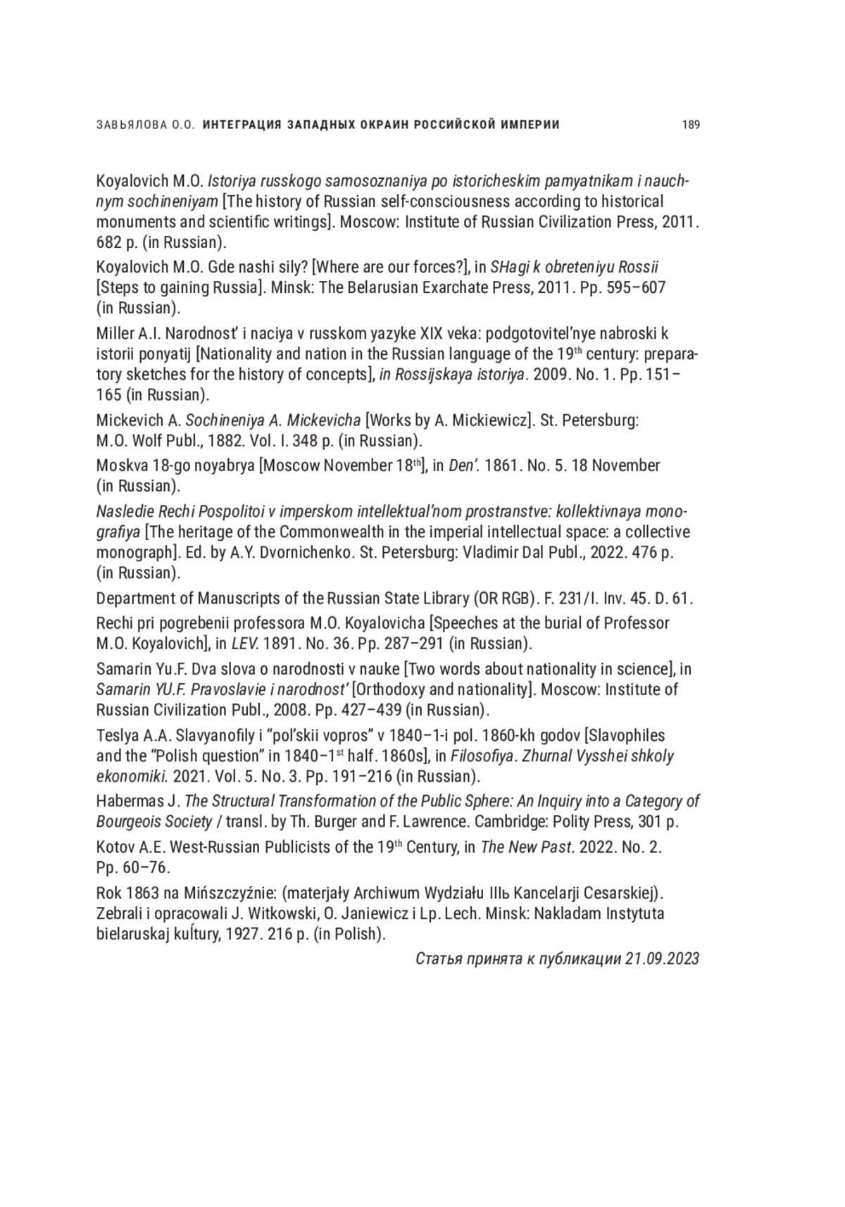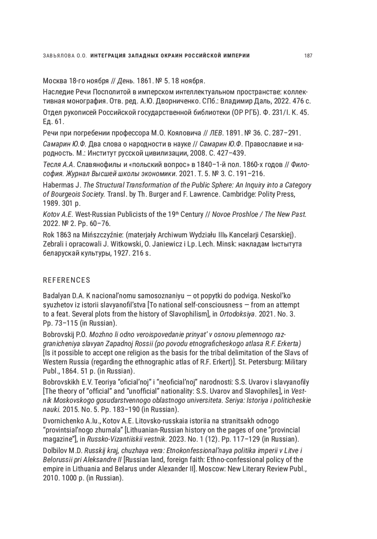 23. Наследие Речи Посполитой в имперском интеллектуальном пространстве: коллективная монография. Отв. ред. А.Ю. Дворниченко. СПб.: Владимир Даль, 2022. 476 с.