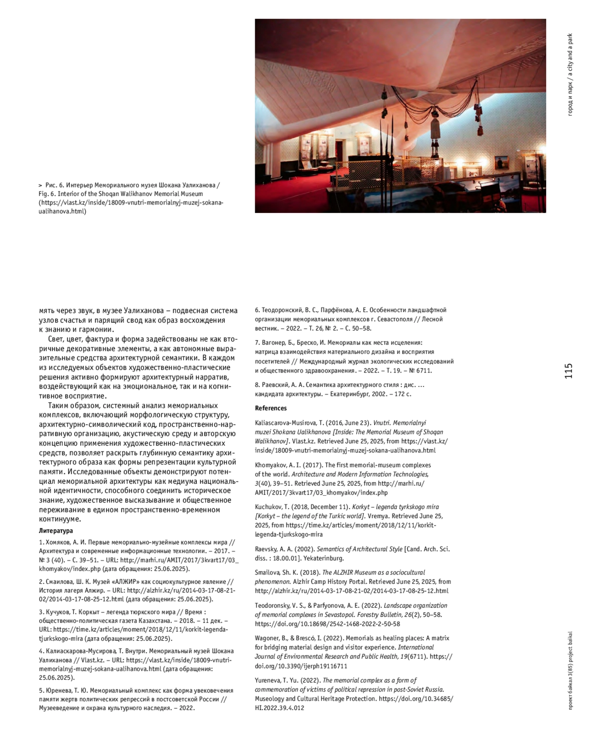 7. Вагонер, Б., Бреско, И. Мемориалы как места исцеления: матрица взаимодействия материального дизайна и восприятия посетителей // Международный журнал экологических исследований и общественного здравоохранения. - 2022. - Т. 19. - № 6711.