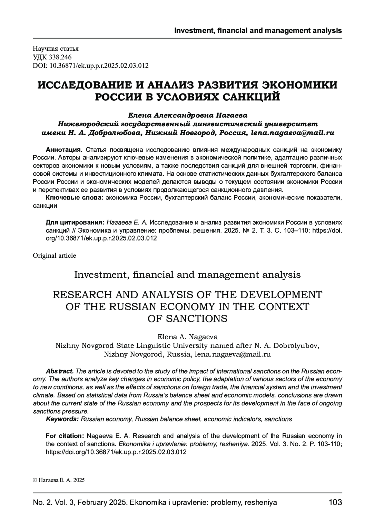 5. Нагаева Е. А. Методика оценки экономического положения отраслей промышленности в России // Экономика и управление: проблемы, решения. - 2022. - Т. 1, № 12 (132). EDN: COZBPB