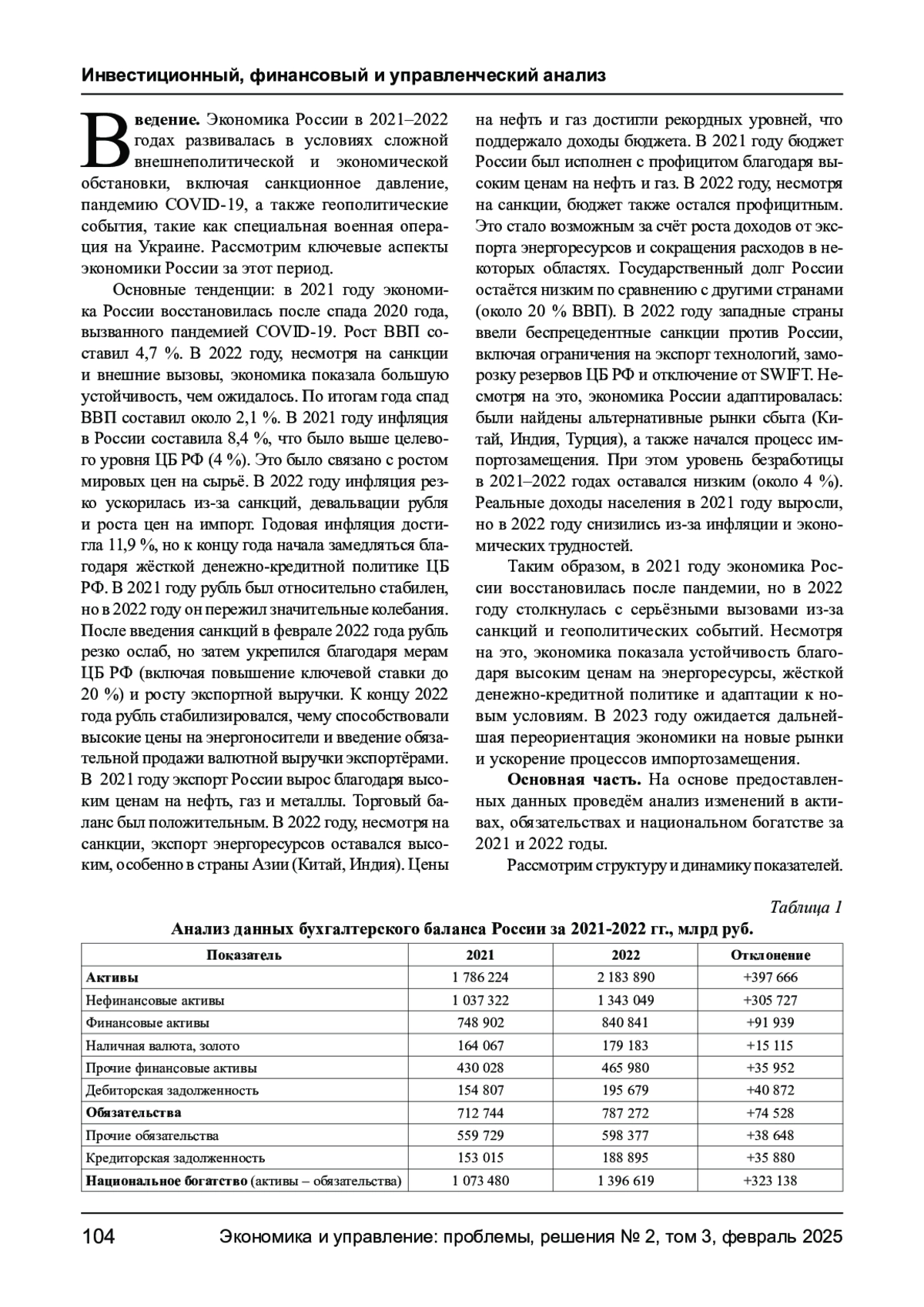 Экономика России в 2021–2022 годах развивалась в условиях сложной внешнеполитической и экономической обстановки, включая санкционное давление, пандемию COVID-19, а также геополитические события, такие как специальная военная операция на Украине.