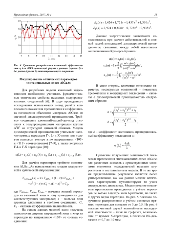 Статья: Исследование оптических характеристик эпитаксиальных слоев AlGaAs (2017)