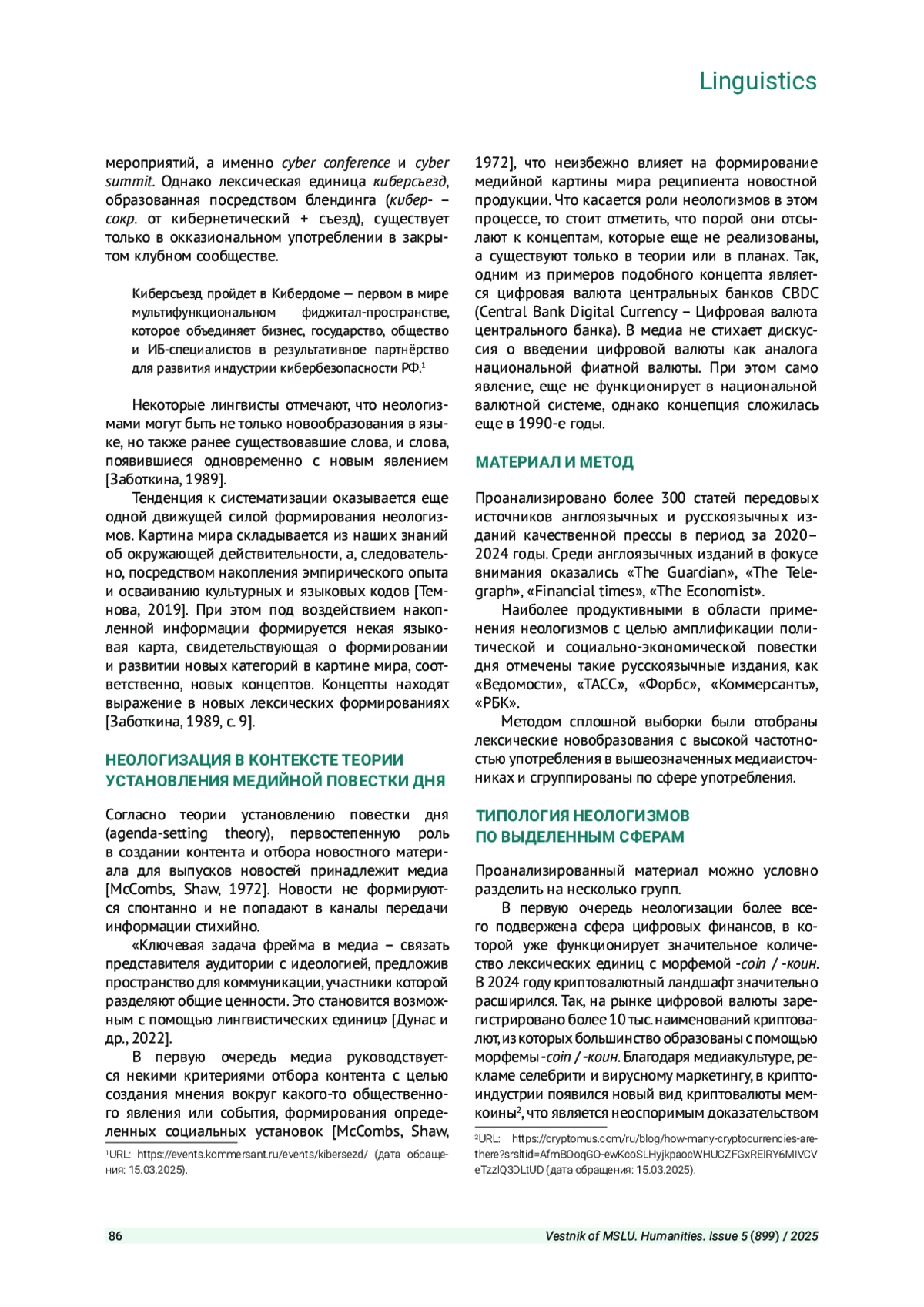 6. Курбанова М. С. Неологизм как языковой феномен в средствах массовой информации. М.: Молодой ученый, 2022.