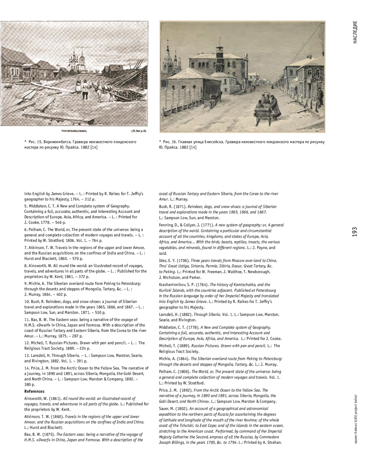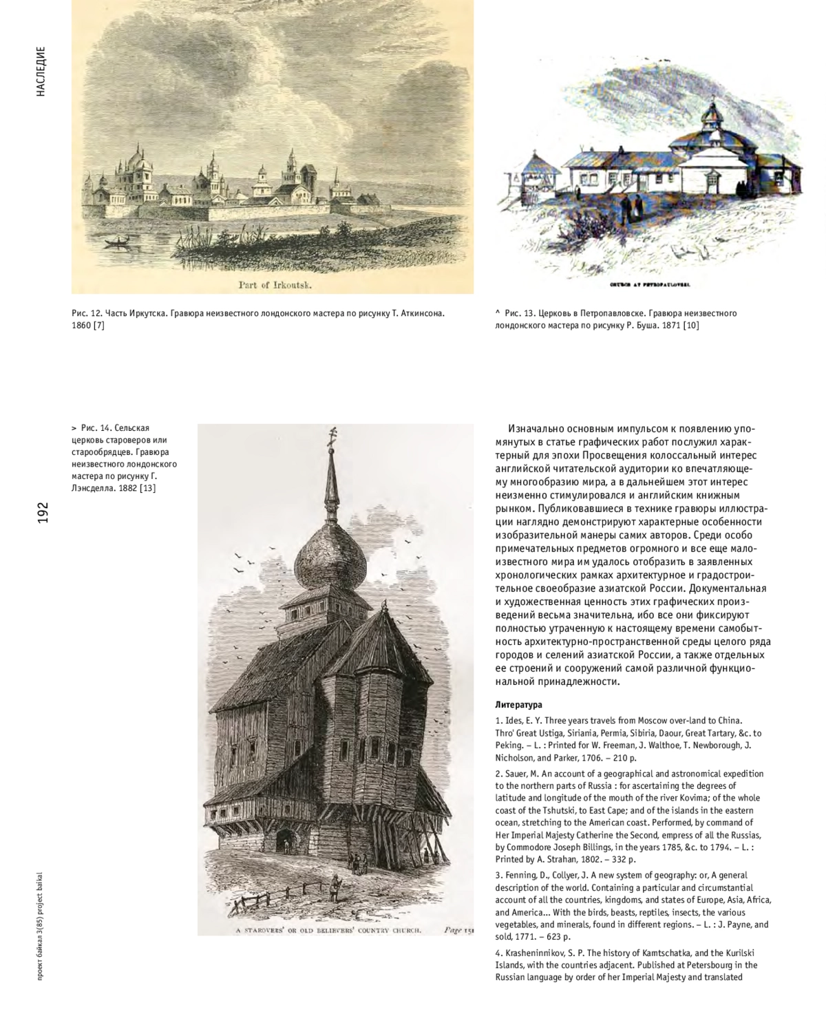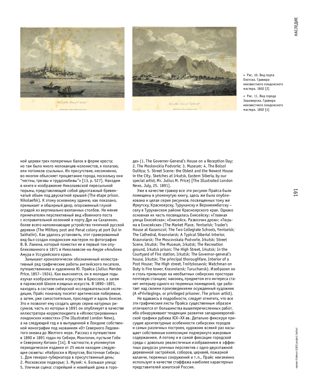 ЧЕКМАРЕВ В. М. ГОРОДСКИЕ И ЗАГОРОДНЫЕ ПОСТРОЙКИ АЗИАТСКОЙ РОССИИ В АНГЛИЙСКОЙ ГРАФИКЕ // ПРОЕКТ БАЙКАЛ. 2025. № 85, ТОМ 22