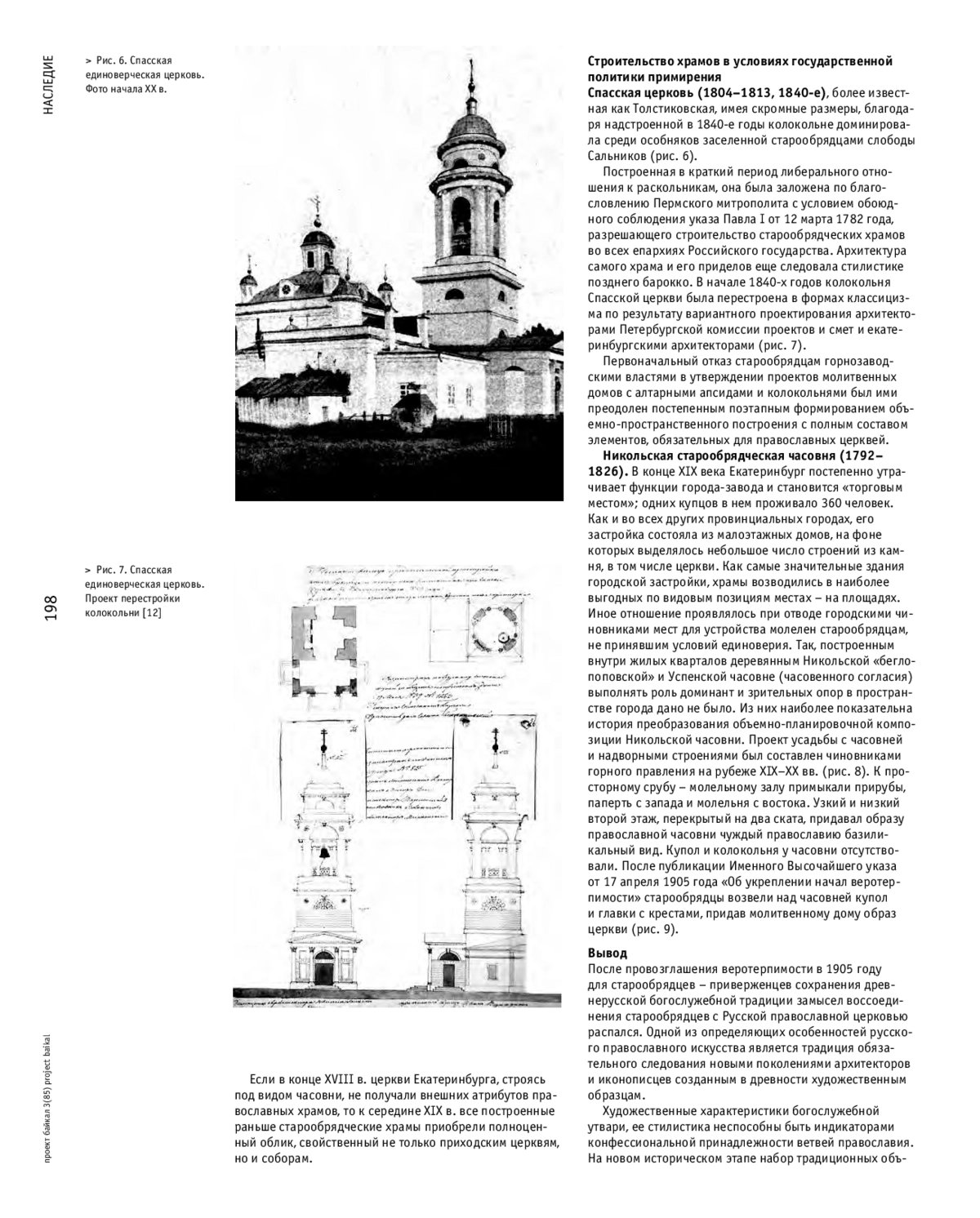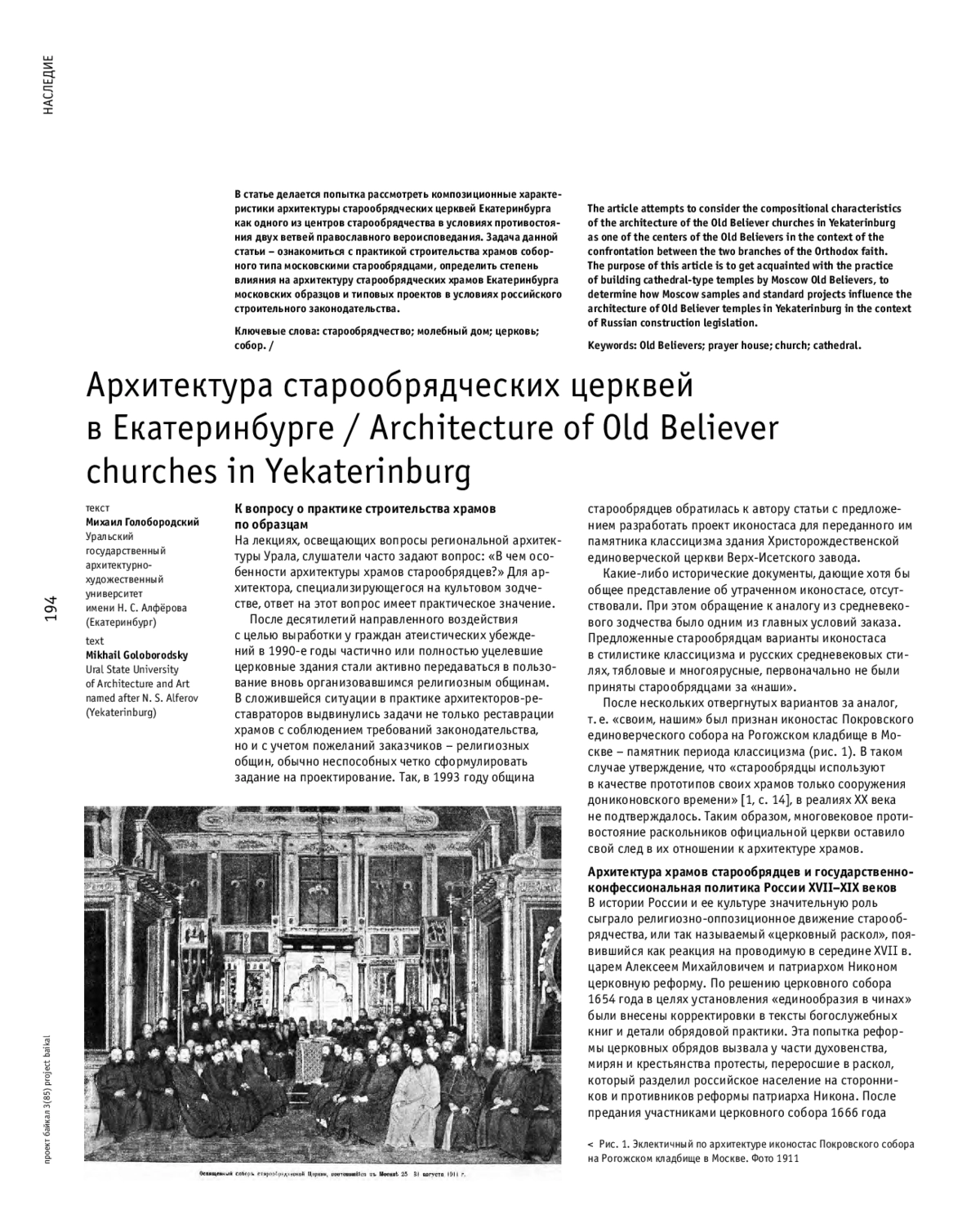 На лекциях, освещающих вопросы региональной архитектуры Урала, слушатели часто задают вопрос: «В чем особенности архитектуры храмов старообрядцев?» Для архитектора, специализирующегося на культовом зодчестве, ответ на этот вопрос имеет практическое значение.