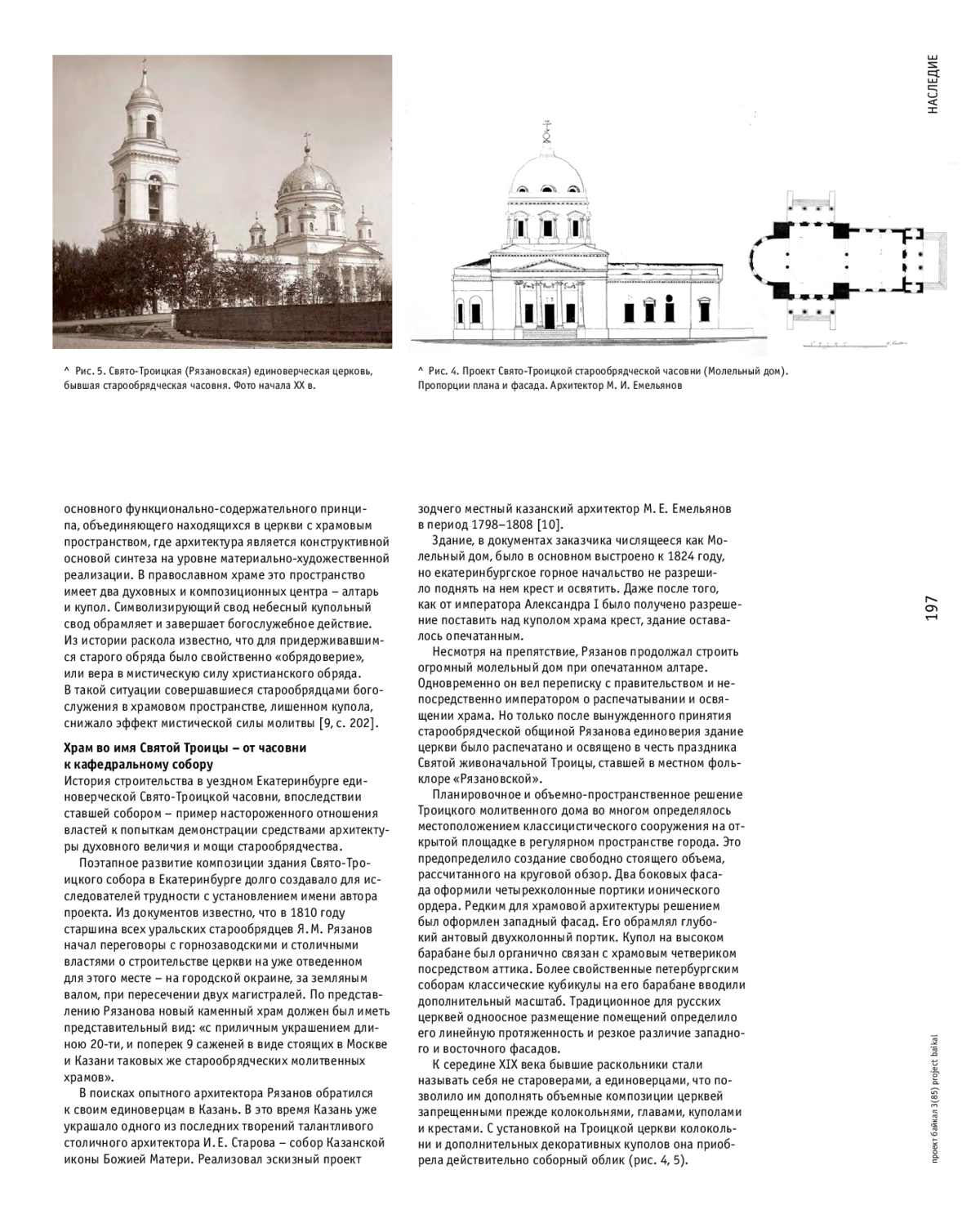 9. Ваньчугова, Н. Н., Голынец, Г. В. Михаил Емельянович Емельянов - первый архитектор Свято-Троицкого кафедрального собора Екатеринбурга. К вопросу атрибуции // Вестник Екатеринбургской духовной семинарии. - 2024. - № 46.- С. 74-99.