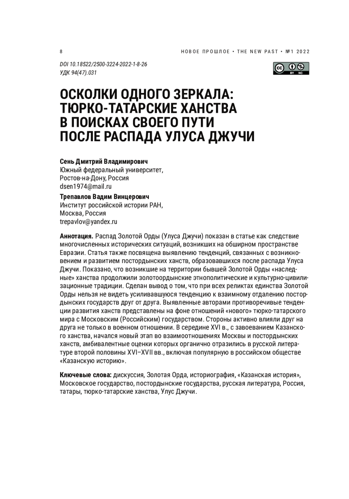 33. Трепавлов В.В. Золотая Орда после распада: воспоминания о единстве // Тюркологический сборник. 2009-2010. Тюркские народы Евразии в древности и средневековье. М.: Восточная литература, 2011. С. 360-383. EDN: OPHRDX