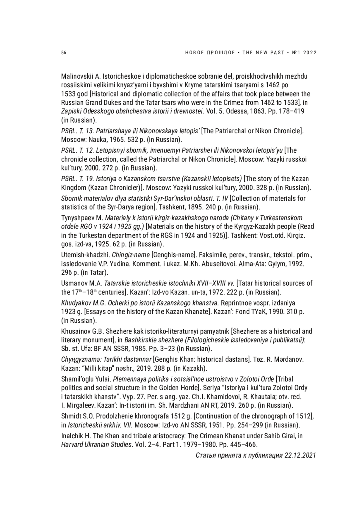 26. Inalchik H. The Khan and tribale aristocracy: The Crimean Khanat under Sahib Girai // Harvard Ukranian Studies. Vol. 2-4. Part 1, 1979-1980. Pp. 445-466.