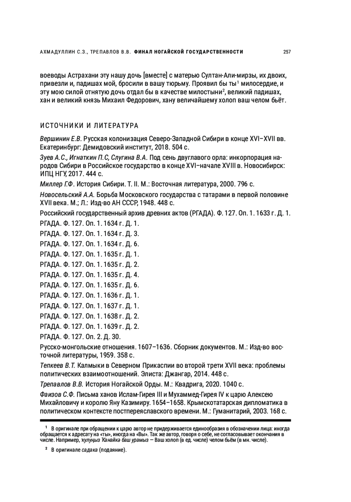 21. Фаизов С.Ф. Письма ханов Ислам-Гирея III и Мухаммед-Гирея IV к царю Алексею Михайловичу и королю Яну Казимиру. 1654-1658. Крымскотатарская дипломатика в политическом контексте постпереяславского времени. М.: Гуманитарий, 2003. 168 с. EDN: QOVHHT