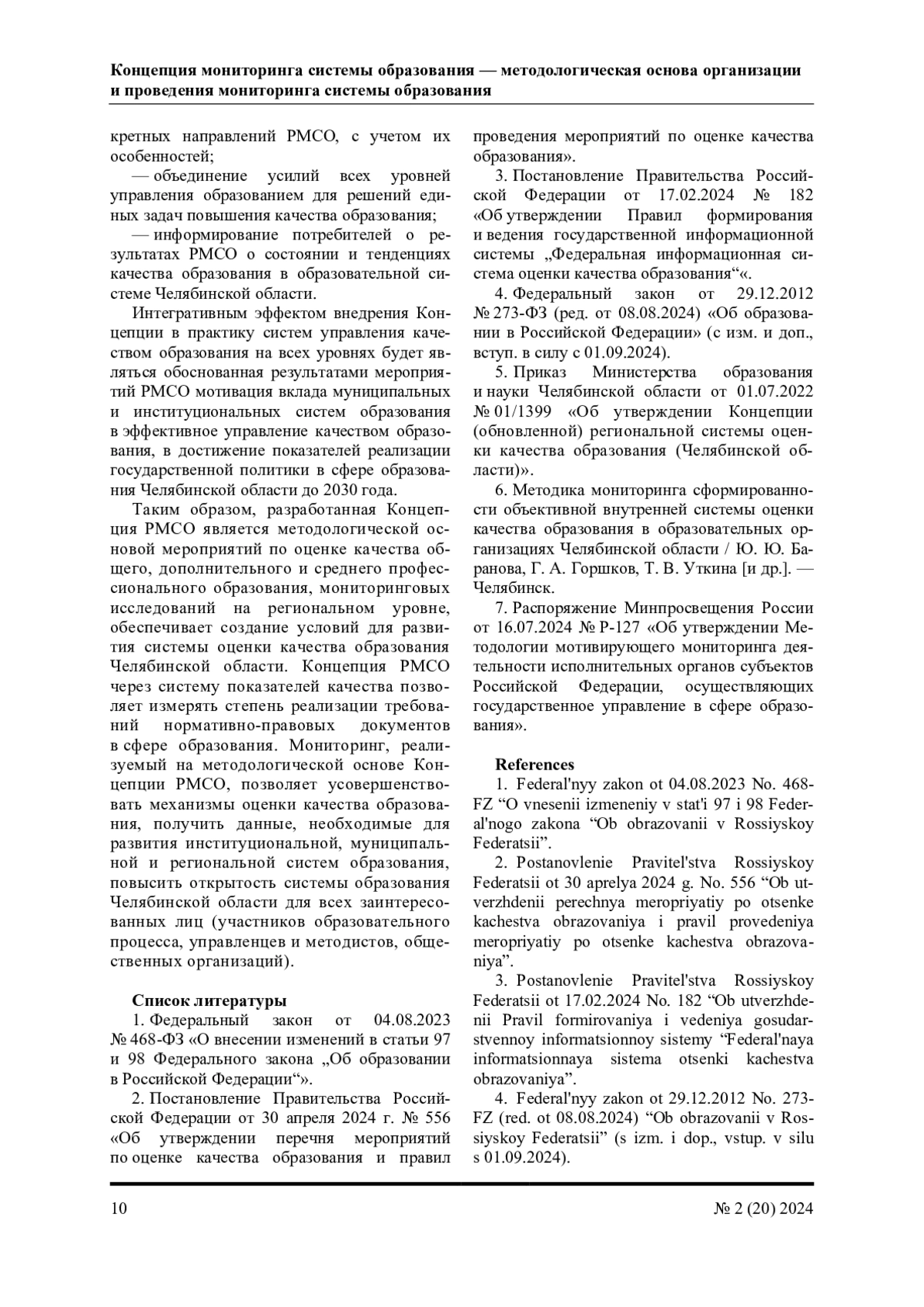6. Методика мониторинга сформированности объективной внутренней системы оценки качества образования в образовательных организациях Челябинской области / Ю. Ю. Баранова, Г. А. Горшков, Т. В. Уткина [и др.]. - Челябинск:ЧИРО,2023.- 41 с.