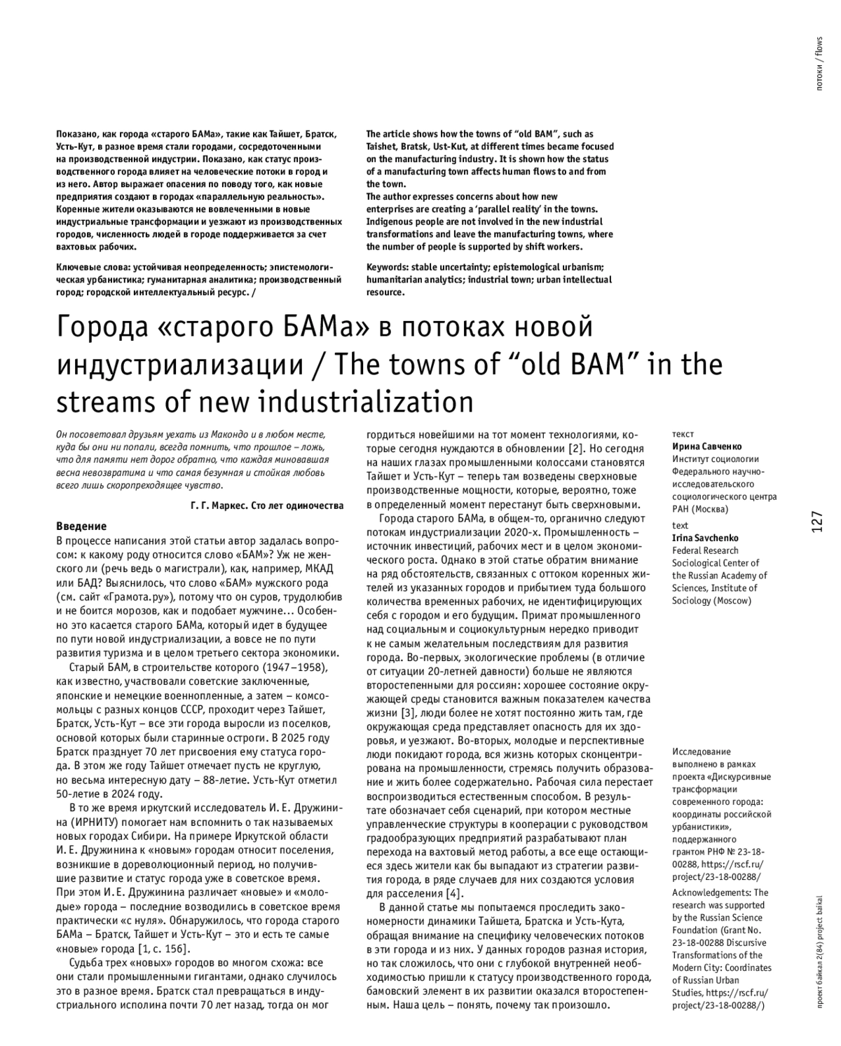 5. Савченко, И. А., Козлова, Ю. В. Дискурсивная урбанистика: гуманитарный проект // Координаты современной урбанистики: дискурсивные трансформации. - Москва: Инфра-М, 2023. - С. 6-9.