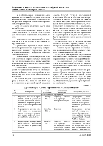 В статье рассмотрены результаты и эффекты реализации модели цифровой экосистемы Муниципального бюджетного общеобразовательного учреждения «Лицей № 23» города Озёрска. Представлено описание деятельности общеобразовательной организации по определению результатов и эффектов реализации модели цифровой экосистемы лицея в рамках управления и сопровождения образовательной деятельности.