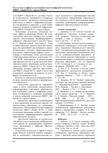 Статья: ОЦЕНКА ЭФФЕКТИВНОСТИ РЕАЛИЗАЦИИ МОДЕЛИ ЦИФРОВОЙ ЭКОСИСТЕМЫ ЛИЦЕЯ (2024)