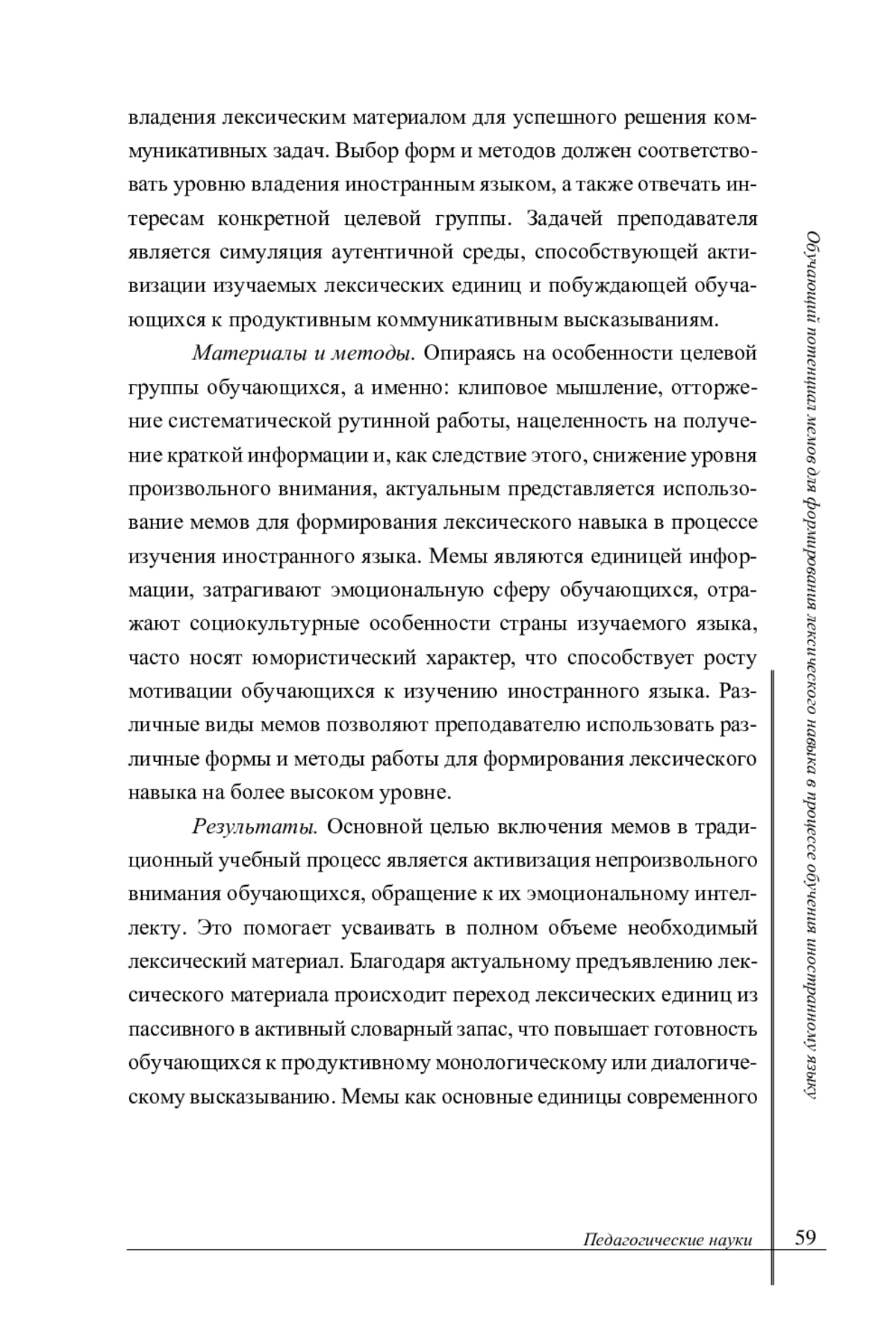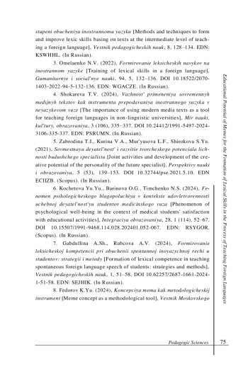 Статья: ОБУЧАЮЩИЙ ПОТЕНЦИАЛ МЕМОВ ДЛЯ ФОРМИРОВАНИЯ ЛЕКСИЧЕСКОГО НАВЫКА В ПРОЦЕССЕ ОБУЧЕНИЯ ИНОСТРАННОМУ ЯЗЫКУ (2025)