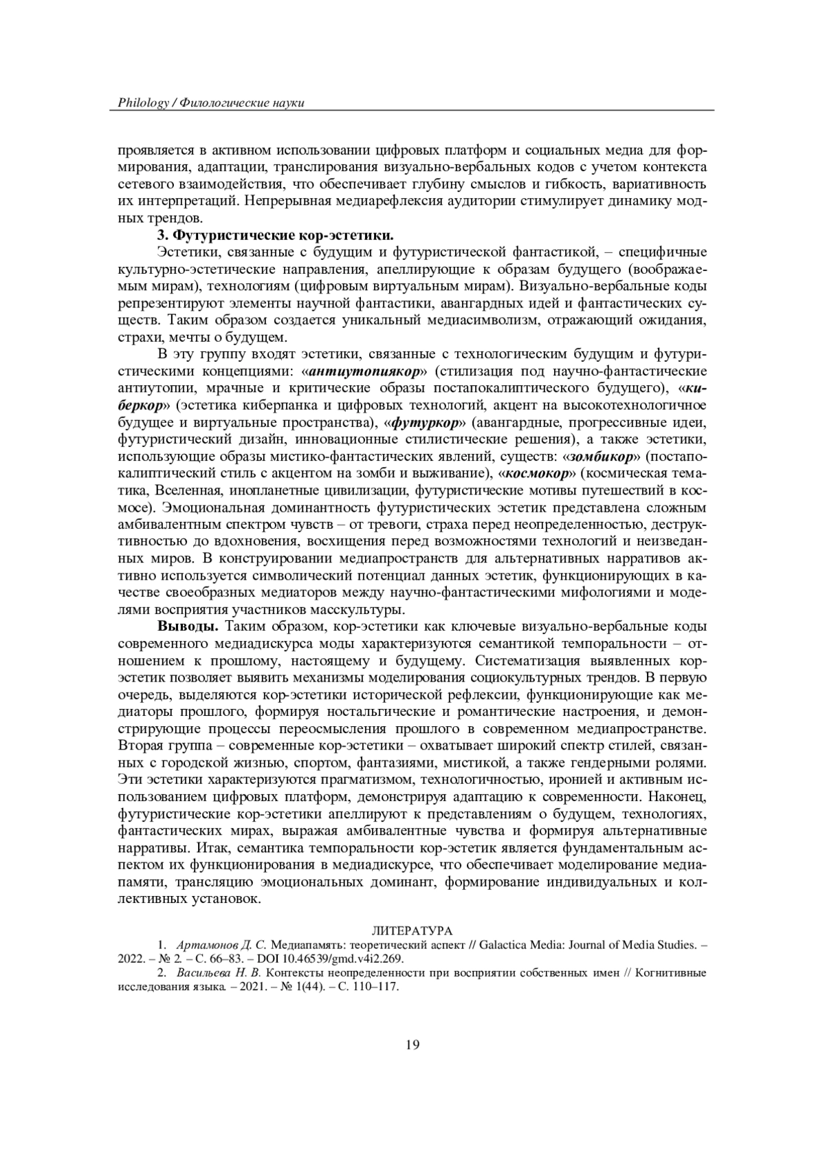 Статья: Вестиментарные практики как игры с хронотопом: функционирование кор-эстетик в медиадискурсе (2025)