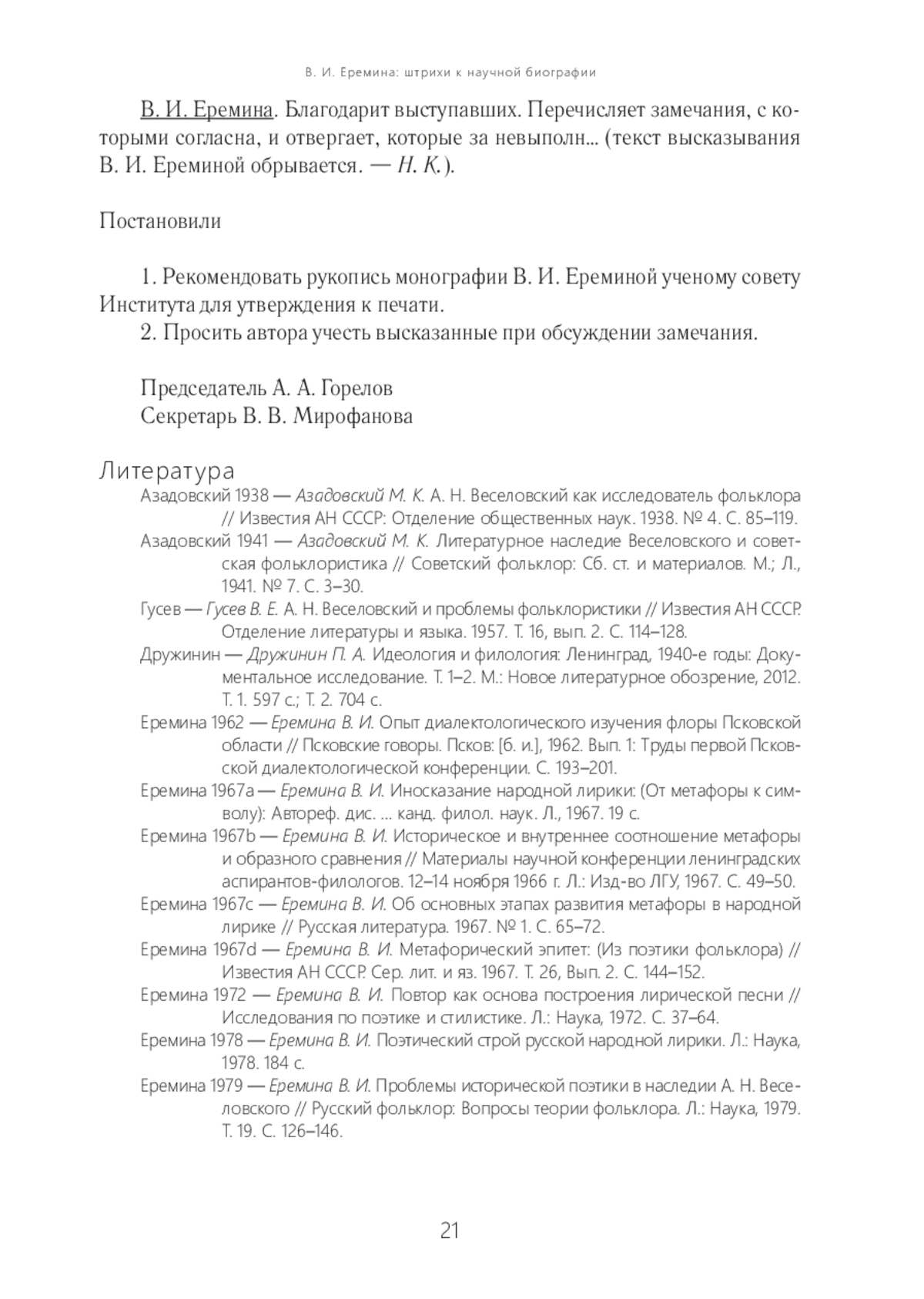 16. Некрылова А. Ф. Вступительное слово // Русский фольклор: Материалы и исследования. СПб.: Наука, 2021. Т. 38: Памяти Виктора Евгеньевича Гусева. С. 5-12. EDN: WQTMXN