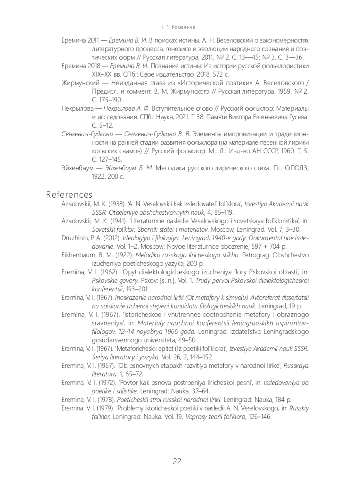 14. Еремина В. И. Познание истины: Из истории русской фольклористики XIX-XX вв. СПб.: Свое издательство, 2018. 572 с.