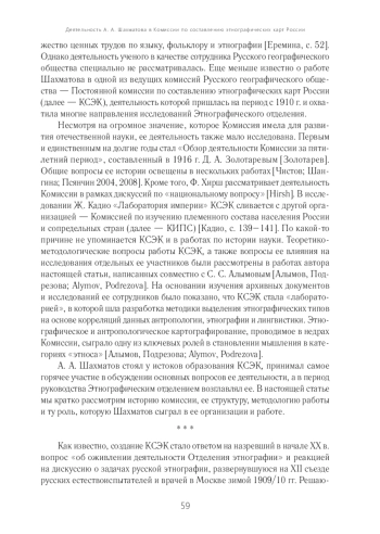 Настоящая статья посвящена малоизвестной странице научной биографии знаменитого ученого А. А. Шахматова — его работе в Комиссии по составлению этнографических карт России Императорского Русского географического общества. На основании архивных документов рассматриваются история Комиссии, ее методология и роль, которую Шахматов сыграл в ее организации и работе. А. А. Шахматов стоял у истоков образования Комиссии, принимал участие в обсуждении основных вопросов ее деятельности, а в период руководства Этнографическим отделением возглавлял ее. Основная деятельность академика была сосредоточена в отделе по языку, где под его руководством шла работа над созданием лингвистической карты Европейской России и Кавказа, а также над изданием «Диалектологической карты русского языка в Европе» (1914), подготовленной Московской диалектологической комиссией при Отделении русского языка и словесности Императорской Академии наук. В Приложении впервые публикуются несколько документов: Протоколы заседаний Комиссии по составлению этнографических карт России и отдела по языку и два письма Д. Н. Ушакова — к С. Ф. Ольденбургу и А. А. Шахматову. Статья продолжает исследование Валерии Игоревны Ереминой, которая немалую часть своей научной энергии отдала изучению и публикации наследия А. А. Шахматова