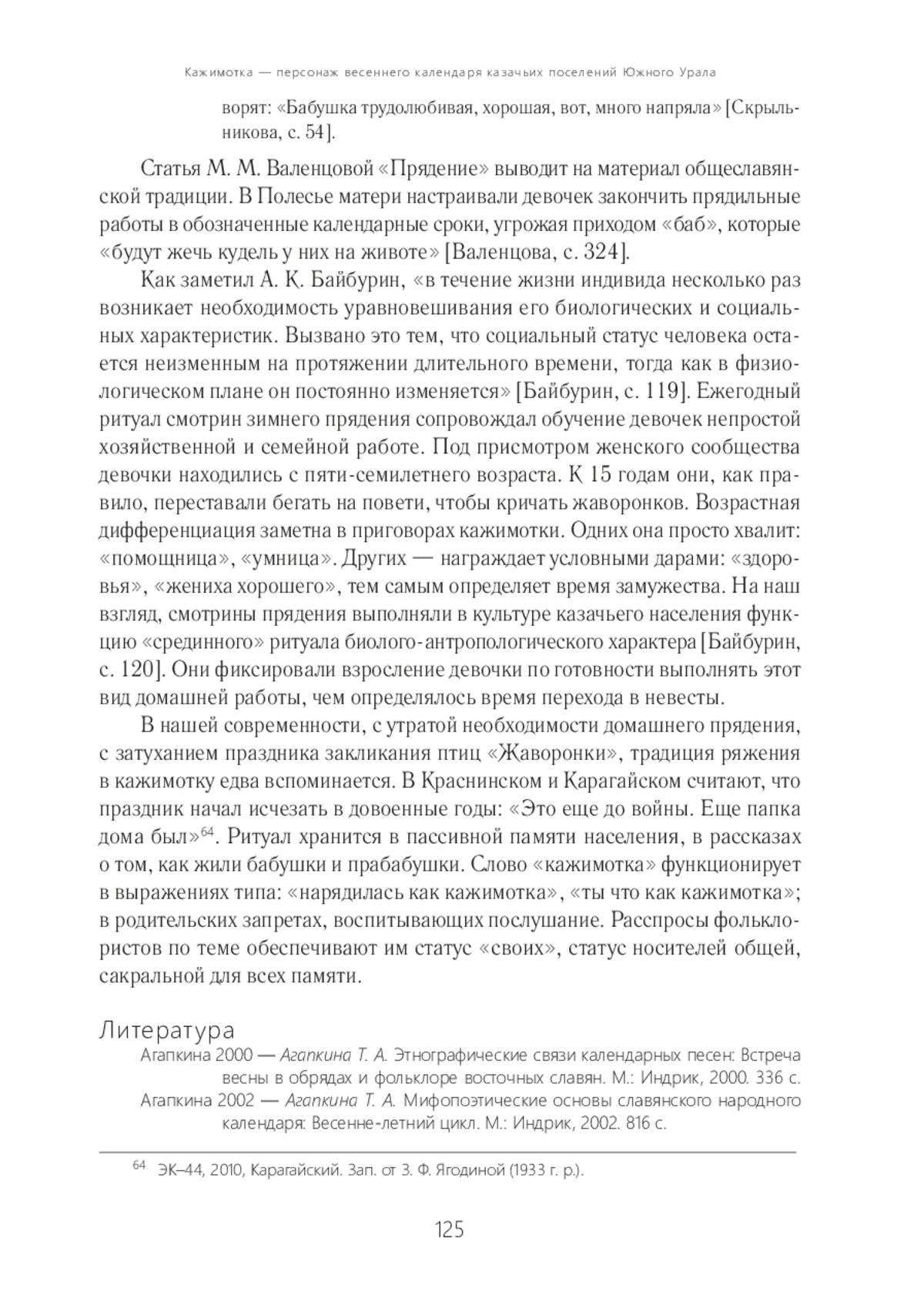 11. Моисеева С. А. Кажимотка в традиционной культуре казачьих поселе ний Южного Урала: экспедиционные материалы // Колесо: Науч.-популяр ный альм. о традиционной культуре народов Среднего Урала. 2019. № 15. С. 43-45.