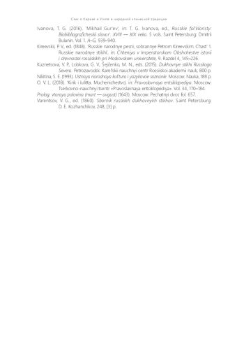 12. Былины: В 25 т. СПб.; М.: Наука; Изд. центр “Классика”, 2001. Т. 1: Былины Печоры. 776 с.; 2011. Т. 6: Былины Кулоя. 922 [1] с. (Свод русского фольклора).
