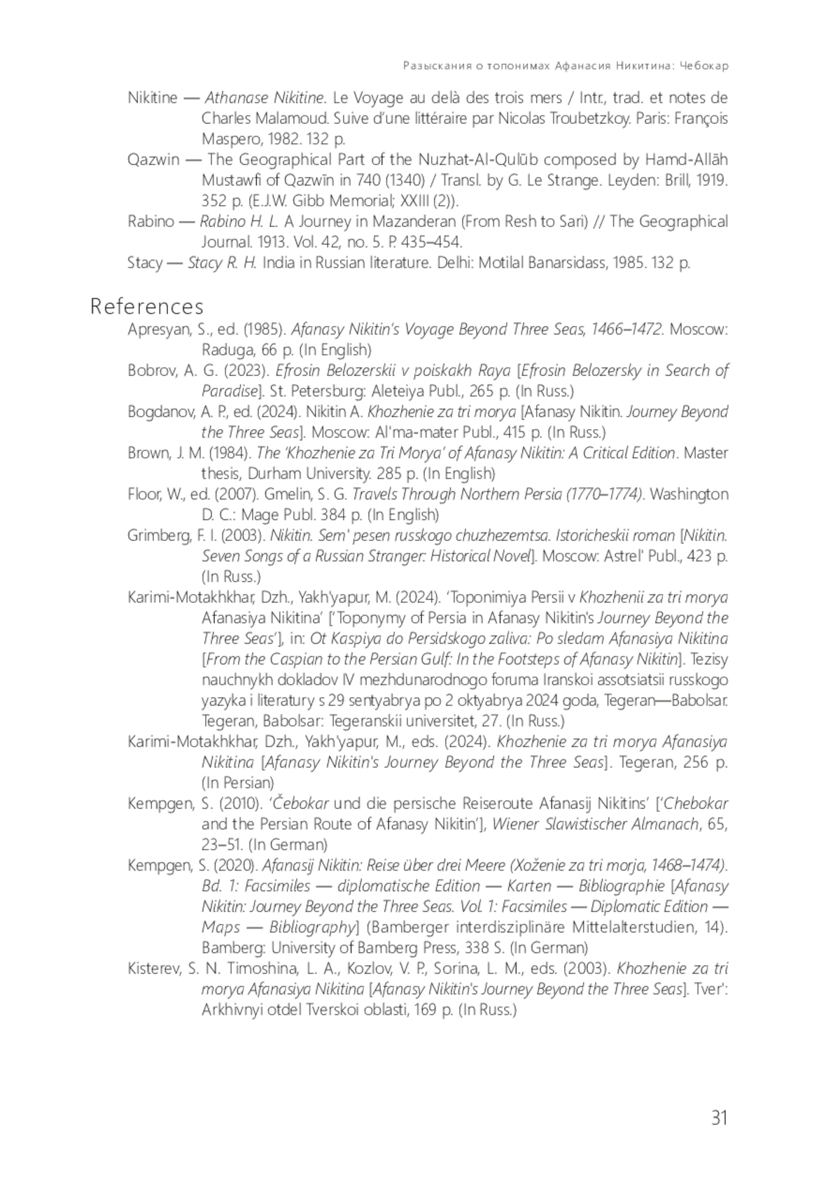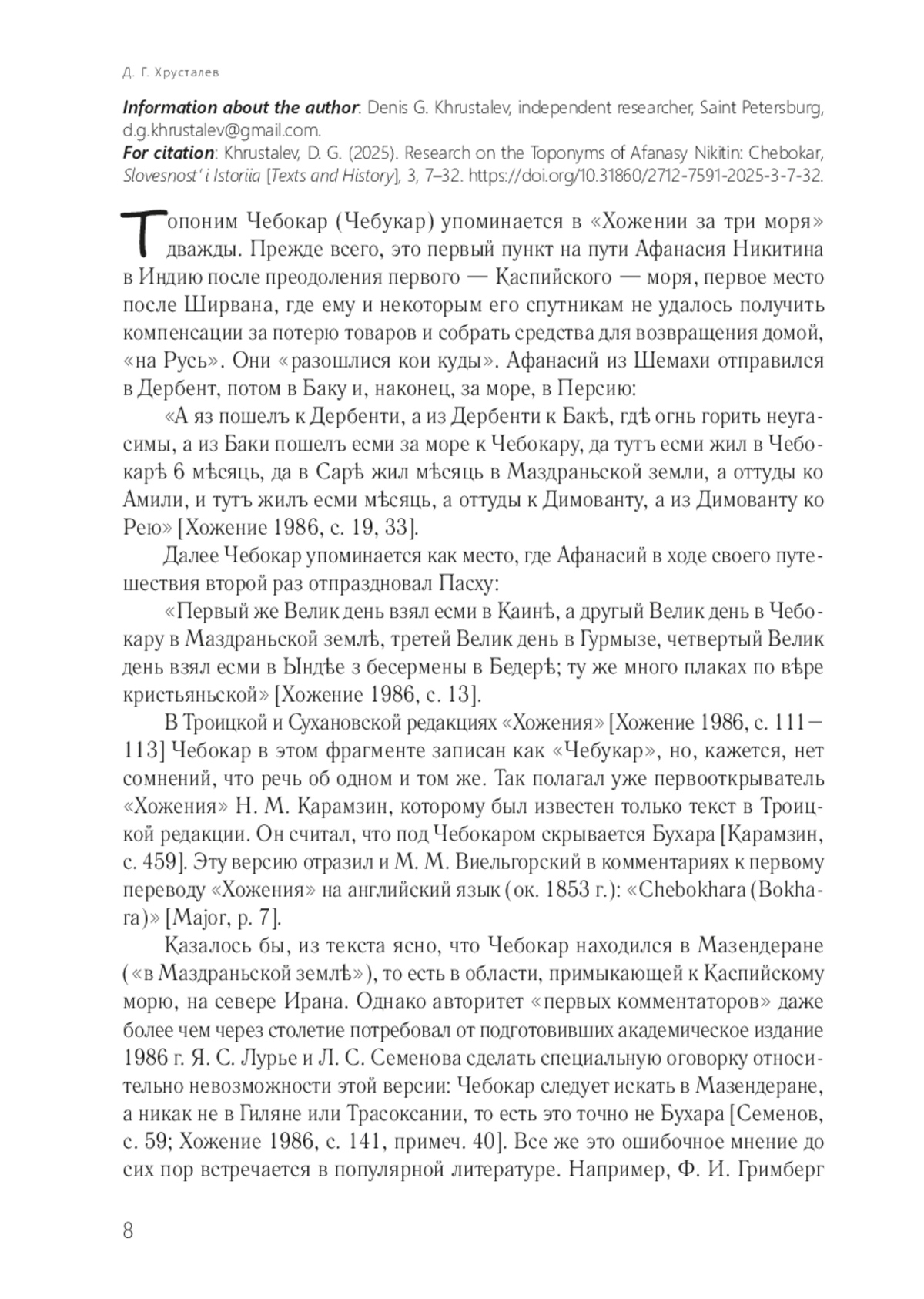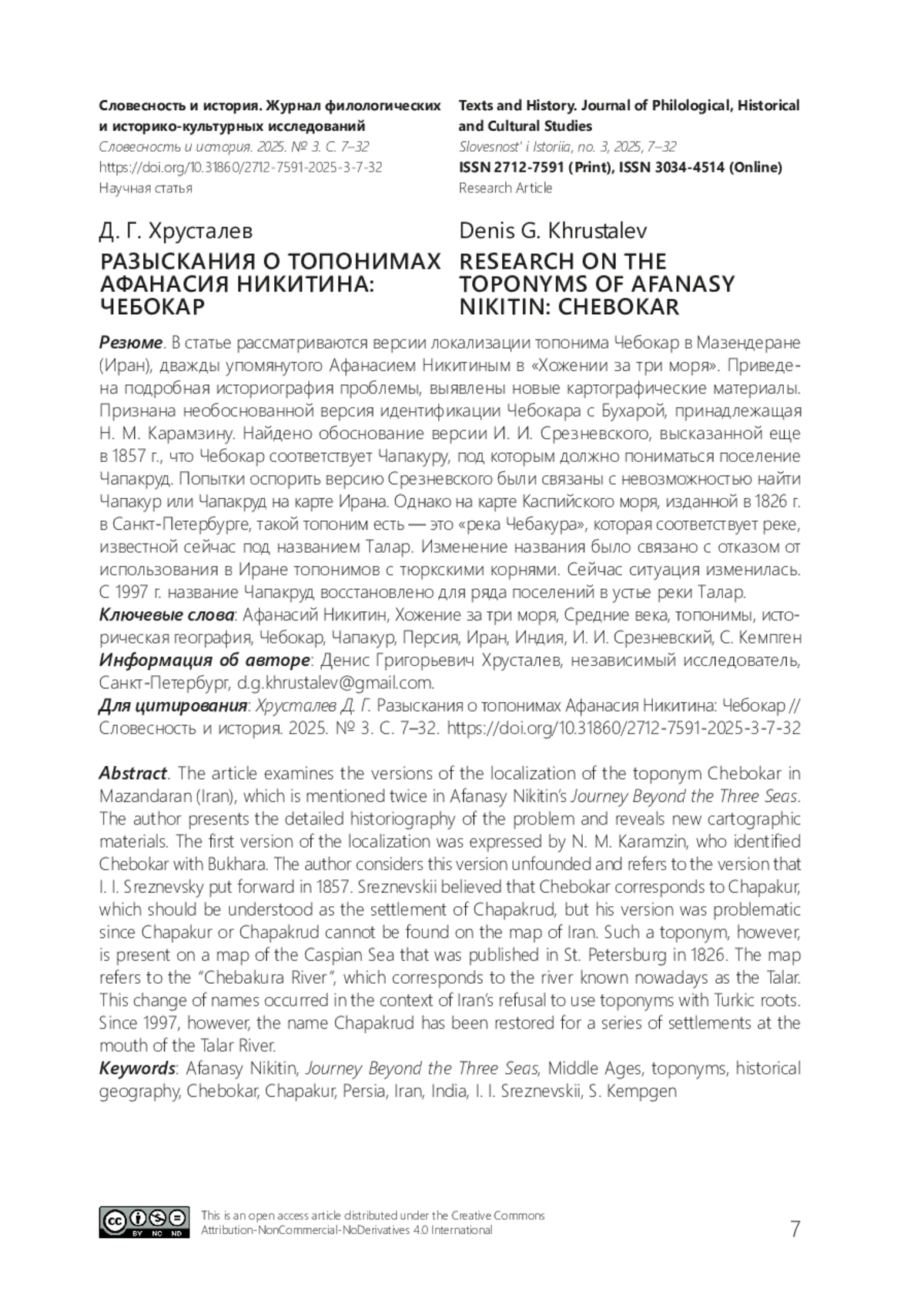ХРУСТАЛЕВ Д. Г. РАЗЫСКАНИЯ О ТОПОНИМАХ АФАНАСИЯ НИКИТИНА: ЧЕБОКАР // СЛОВЕСНОСТЬ И ИСТОРИЯ. 2025. № 3