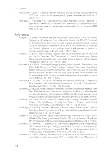 6. Духанина А. В. Вторая Проложная редакция Жития Стефана Пермского, связанная с общерусской канонизацией святителя // Древняя Русь: Вопросы медиевистики. 2018. № 4 (74). С. 129-150.