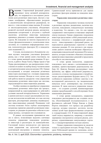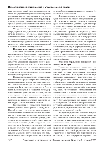 Статья: УПРАВЛЕНИЕ ПОВЕДЕНИЕМ РОЗНИЧНЫХ ИНВЕСТОРОВ НА ФОНДОВОМ РЫНКЕ: ТЕОРЕТИЧЕСКИЙ АСПЕКТ (2025)
