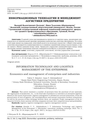 8. Поросенкова В. В., Малахов С. В. Информационные технологии в логистике // Молодой ученый. - 2023. - № 19 (466). - С. 21- URL: https://moluch.ru/archive/466/102496. EDN: UOUKHA