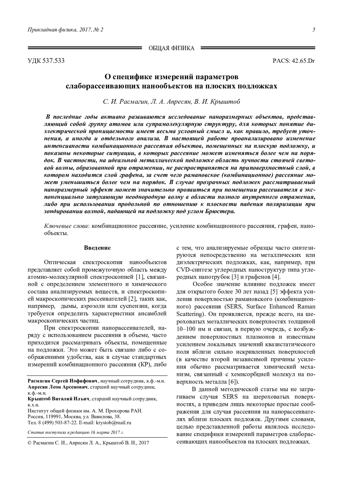Расмагин С. И., Апресян Л. А., Крыштоб В. И. О специфике измерений параметров слаборассеивающих нанообъектов на плоских подложках 5