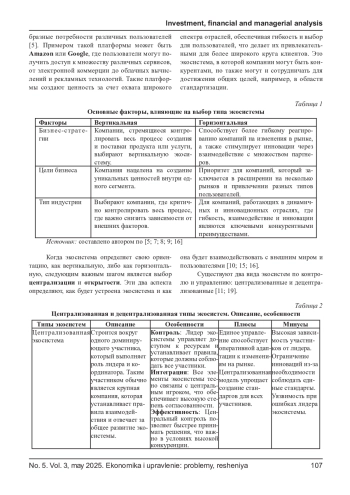 Статья посвящена исследованию феномена бизнес-экосистем, которые становятся ключевым элементом современной экономики в условиях цифровизации и глобализации. В работе представлена детальная классификация экосистем на основе различных критериев: вертикальные и горизонтальные, централизованные и децентрализованные, открытые, закрытые и гибридные модели. Каждый тип экосистемы описан с точки зрения его особенностей, преимуществ, недостатков и примеров успешных компаний, таких как Tesla, Apple, Amazon. Особое внимание уделено анализу стратегий взаимодействия участников экосистем, а также вызовам, с которыми сталкиваются компании при их создании и управлении. Статья предлагает структурированный подход к классификации экосистем, который может быть использован для дальнейшего анализа их эволюции, влияния на инновационные процессы и адаптации к изменениям в рыночной среде.