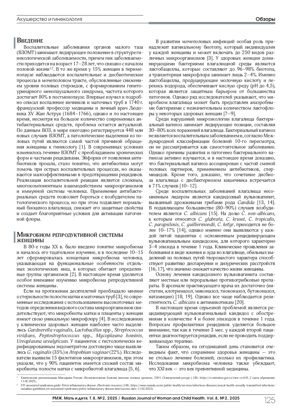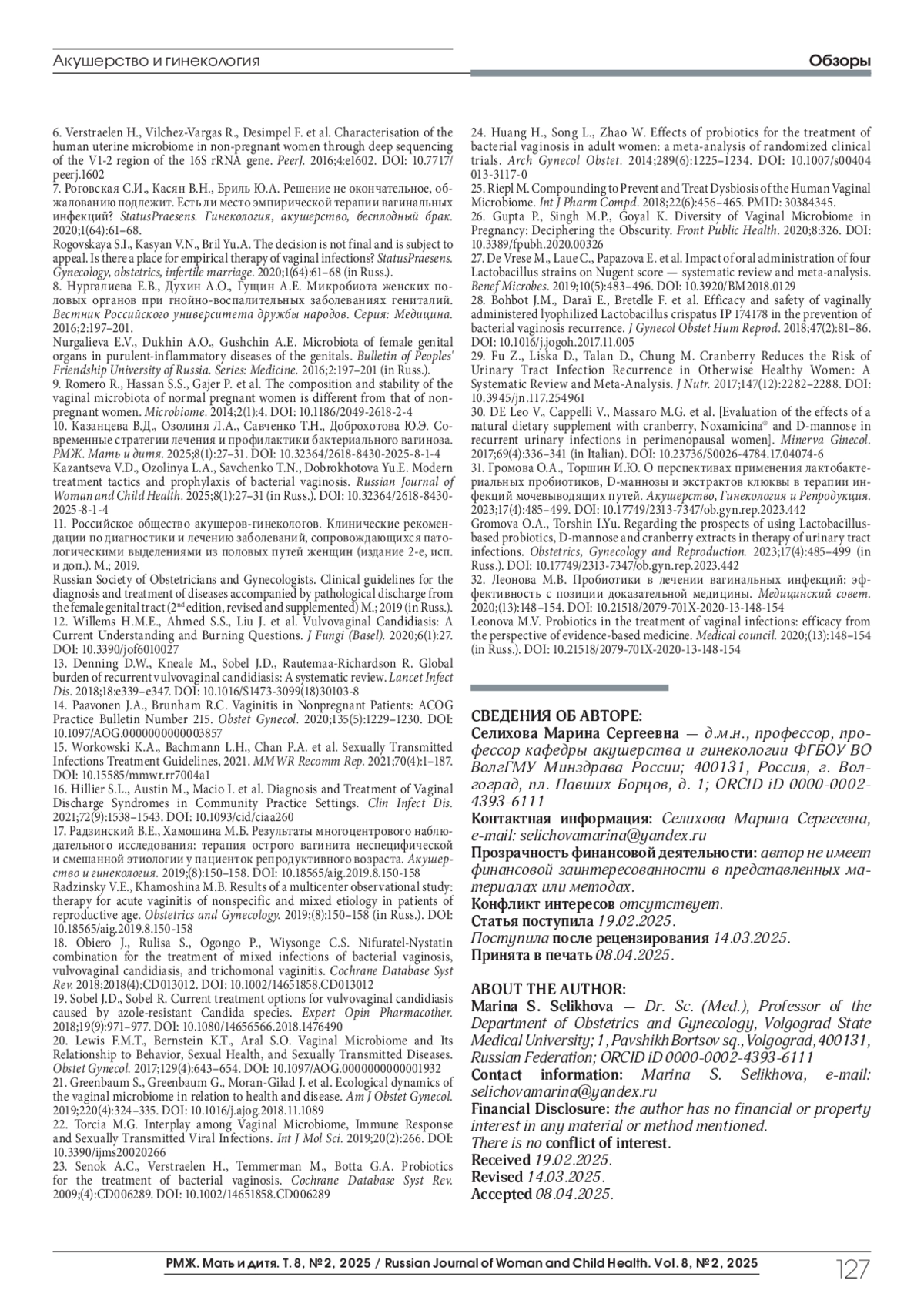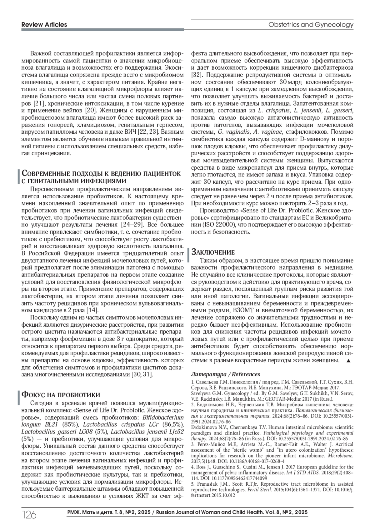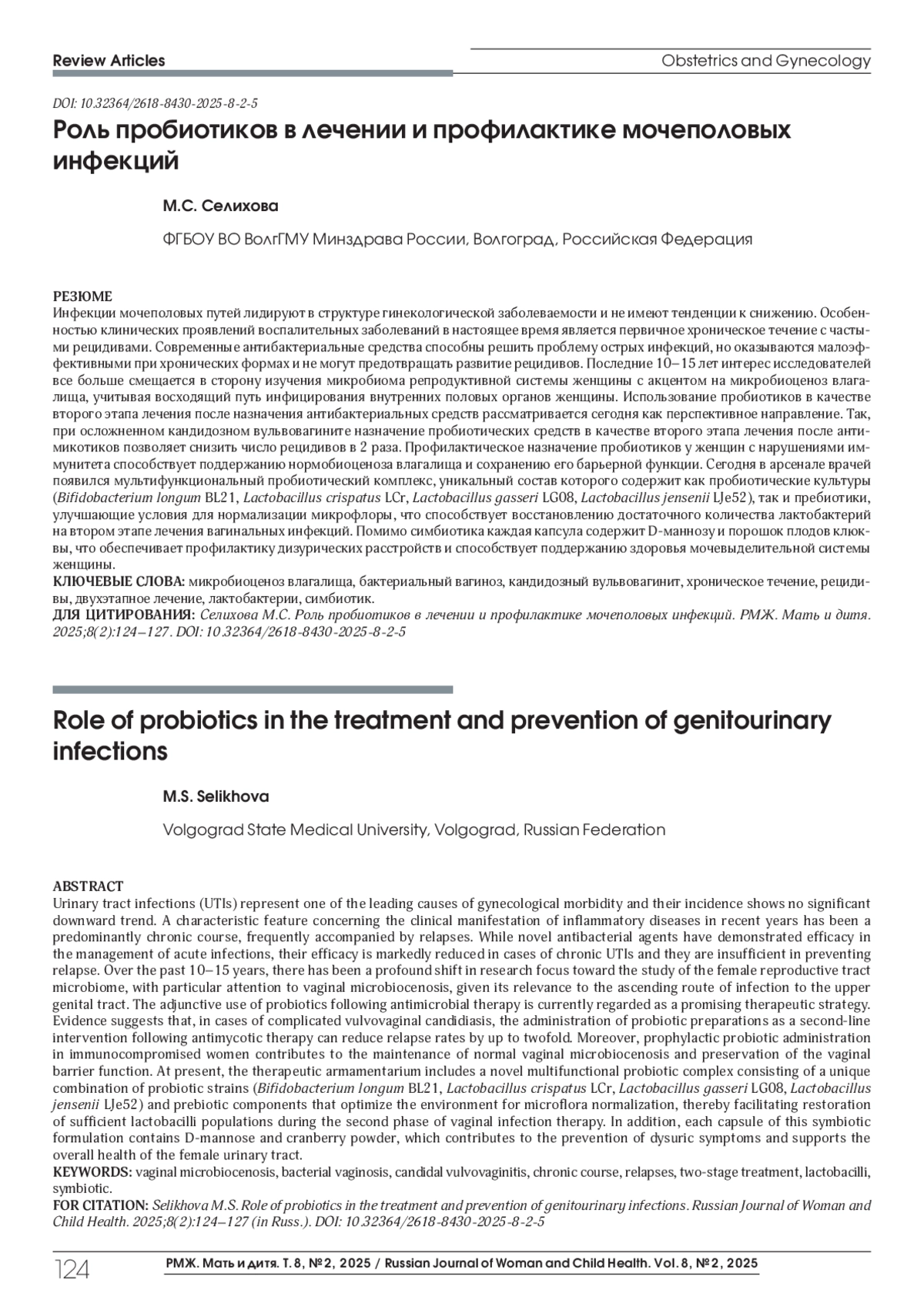 СЕЛИХОВА (. М. РОЛЬ ПРОБИОТИКОВ В ЛЕЧЕНИИ И ПРОФИЛАКТИКЕ МОЧЕПОЛОВЫХ ИНФЕКЦИЙ // РМЖ. МАТЬ И ДИТЯ. 2025. № 2, ТОМ 8