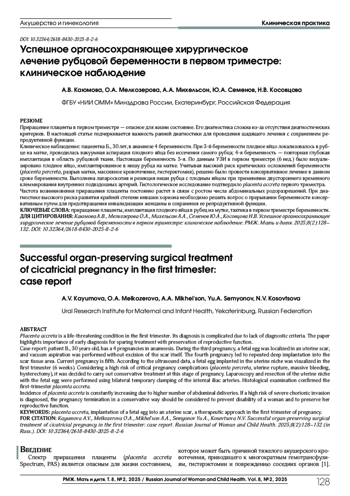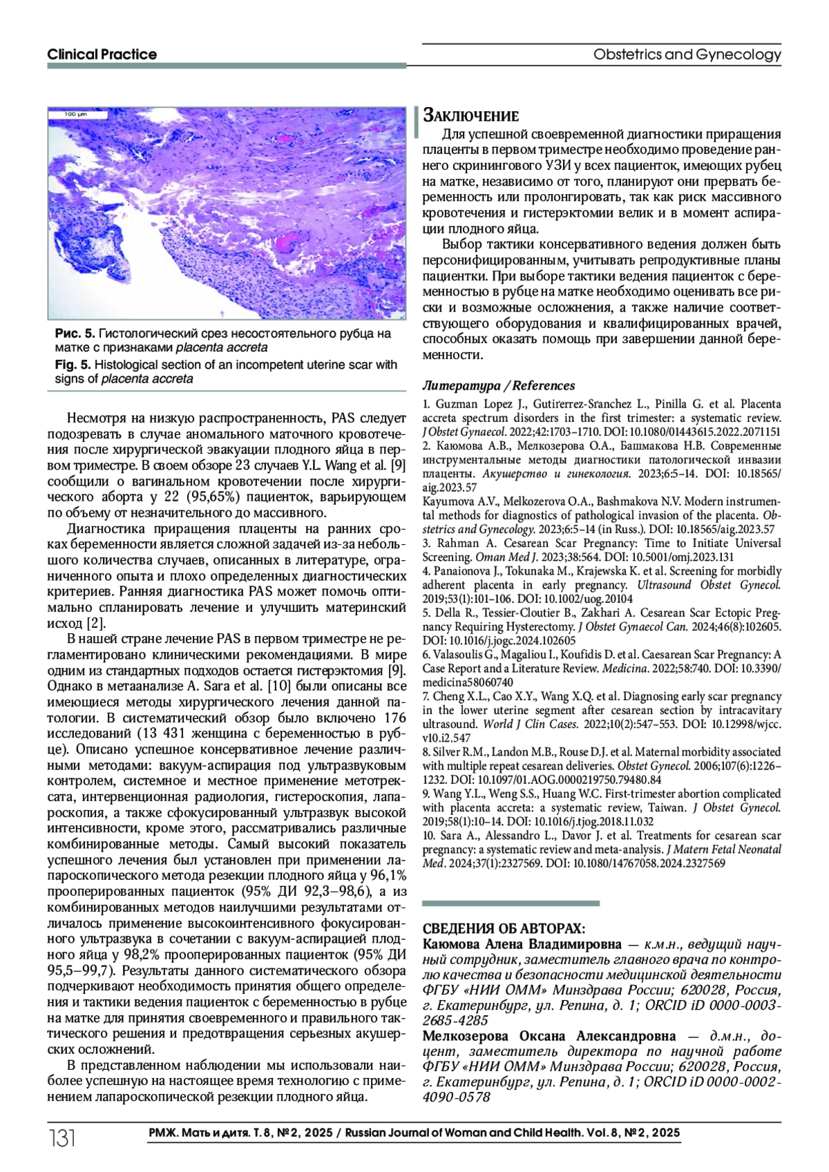 1. Guzman Lopez J., Gutirerrez-Sranchez L., Pinilla G. et al. Placenta accreta spectrum disorders in the first trimester: a systematic review. J Obstet Gynaecol, 2022;42:1703-1710. DOI: 10.1080/01443615.2022.2071151
