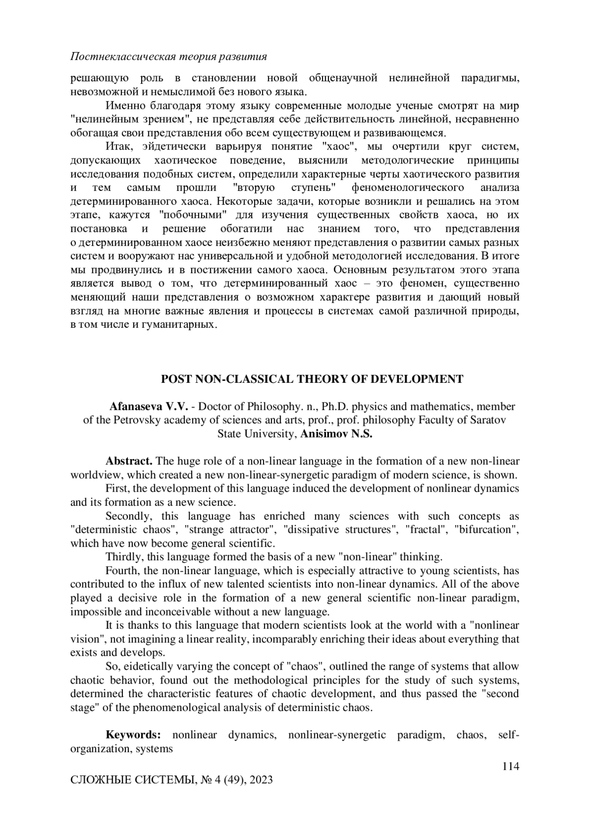 АФАНАСЬЕВА В.В. ПОСТНЕКЛАССИЧЕСКАЯ ТЕОРИЯ РАЗВИТИЯ // СЛОЖНЫЕ СИСТЕМЫ. 2023. № 4 (49)