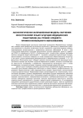 Вопрос формирования ценностных ориентаций выпускников образовательных учреждений с каждым годом приобретает все большую актуальность. Деятельность медицинского работника направлена на спасение человеческих жизней, сохранение и укрепление здоровья граждан, предотвращение распространения и профилактику различных заболеваний. В связи с этим к выпускникам медицинских колледжей предъявляются высокие требования: одним из требований ФГОС по специальности 34.02.01 «Сестринское дело» к результатам освоения программы является овладение общей компетенцией 6 – «проявлять гражданско-патриотическую позицию, демонстрировать осознанное поведение на основе традиционных общечеловеческих ценностей, в том числе с учетом гармонизации межнациональных и межрелигиозных отношений…» [1, с. 6]. Дисциплина «Иностранный язык» обладает широким спектром возможностей реализации аксиологического подхода при обучении студентов медицинского профиля, которые в настоящее время недостаточно исследованы и разработаны. Вышеуказанное противоречие легло в основу исследования и послужило мотивом к созданию соответствующей модели обучения. Данная статья посвящена описанию аксиологически направленной модели обучения иностранному языку будущих медицинских работников на уровне среднего профессионального образования. Модель включает в себя следующие блоки: целевой, теоретический, технологический и оценочно-результативный. Предлагаемая модель рассматривается как теоретический и технологический фундамент процесса формирования аксиосферы будущих медицинских работников на занятиях по иностранному языку. Описываемая модель реализуется на основании следующих подходов: аксиологического, коммуникативно-когнитивного, проблемно-деятельностного и предполагает соблюдение следующих принципов: принципа национальной идентичности, принципа социокультурной направленности, принципа гуманистической направленности. В исследовании определены организационно-дидактические условия реализации модели, такие как применение комплекса аксиологически направленных заданий, развитие критического мышления обучающихся, интеграция дисциплины «Иностранный язык» с дисциплинами медицинской направленности