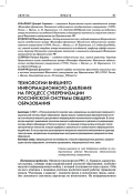 Цель статьи - представить результаты исследования оценки информационного потока внешнего давления на политику суверенизации российской системы общего образования. Под суверенизацией национальной системы образования понимается формирование единого образовательного пространства, основывающегося на применении россиецентричной модели в содержании процесса образования. Алгоритм сбора и анализа и верификация данных включает когнитивное картирование 600 цифровых документов исследуемой тематической направленности. Сбор маркеров и автоматизированный социально-медийный анализ проводился в период с 1 марта 2022 года по 1 апреля 2025 года. Выявлено, что анализируемый информационный поток внешнего деструктивного информационно-психологического воздействия носит управляемый характер. Целью подобного воздействия служит формирование негативного восприятия проводимой государством политики. В исследовании представлены результаты социально-медийного анализа и составлено семантическое ядро информационного потока внешнего деструктивного информационно-психологического воздействия на суверенизацию российской системы общего образования. Авторами также структурированы риски, связанные с использованием цифровых технологий в общественном развитии. Отмечается необходимость мониторинга создателей алгоритмов, настраивающих контент под актуальные потребности и предпочтения аудитории. Указывается, что цифровые платформы стали главным инструментом управляемой и намеренной дестабилизации политической власти. В результате исследования анализ социального графа цифровой инфраструктуры внешнего информационного давления демонстрирует разветвленность сформировавшейся структуры, опирающейся главным образом на СМИ-иноагенты и зарубежные СМИ на русском языке, являющиеся основными авторами дискредитирующего контента. Полученные результаты важно учитывать для продуктивного противодействия внешнему информационно-психологическому воздействию на национальную систему образования.