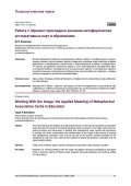 В статье обсуждается проблема экстериоризации образа в работе с метафорическими ассоциативными картами; рассматриваются вопросы соединения метафоры, слова и действия в образе, вербального и невербального, сознательного и бессознательного в работе с метафорическими картами; раскрываются механизмы работы с ними; обосновывается трансформация образа в процессе работы с метафорическими ассоциативными картами и ключевая роль педагога; приводятся примеры использования метафорических карт при работе со студентами - ролевые позиции, мотивация и ценностно-смысловая сфера.