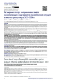 Результаты. С 2022 по 2024 г. в эпизоотический процесс, вызванный вирусом гриппа подтипа H5N1, были вовлечены млекопитающие различных семейств, у представителей которых ранее болезнь не регистрировали: полорогие, куницеобразные, медвежьи и др. Для эффективного предотвращения распространения заболевания важны строгие меры биобезопасности и актуализация систем оповещения. В ограниченном числе стран (Бангладеш, Доминиканская Республика, Китай, Египет, Индонезия, Лаос, Вьетнам, страны Евросоюза и др.) в качестве профилактической экстренной меры для защиты птиц от гриппа использовали вакцинацию.