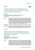 Цель исследования - рассмотрение концептов «время» и «возраст» в английской и русской языковых картинах мира с точки зрения их эмпирической и метафорической взаимосвязи, выраженной в паремиях и устойчивых фразеологических выражениях (наиболее репрезентативных единицах языка для исследования понятийной системы человека и способов концептуализации его опыта). Оба концепта антропоцентричны. Они связаны с линейной и циклической моделями мира и с категорией «развитие». Метафоры, которые используются в обеих языковых картинах мира, основаны на пространственных и физических семиотических оппозициях, что приводит к определенному отождествлению или параллелизму в понимании времени и возраста, а также к их соподчиненности: выражению понятия «время» через понятие «возраст».