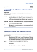 В статье анализируется российский фактор в современном внешнеполитическом курсе правительства Венгрии во главе с В. Орбаном и его партией «Фидес - Венгерский гражданский союз». Сравниваются официальные позиции правительства по наиболее резонансным вопросам, связанным с Россией. К ним относятся энергетические санкций, членство Финляндии и Швеции в НАТО, поставки вооружения украинской стороне. Исследование показывает, что, несмотря на согласие со многими ценностными ориентирами партнеров по ЕС И НАТО, Венгрия готова продолжать последовательно защищать собственные экономические и энергетические интересы.