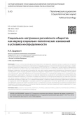 В статье на основе анализа данных мониторингового исследования предложен взгляд на социальное настроение как на маркер социально-политических изменений, включающий социально-психологический механизм адаптации к травмирующему периоду неопределенности. На основе данных ИСПИ ФНИСЦ РАН и в сравнении с результатами исследований ведущих аналитических центров страны дана характеристика психологического состояния российского общества, в частности, динамики социального настроения за последние три года сквозь призму эмоционально-рациональных показателей: оценка сложившейся в стране ситуации, динамика социальных ожиданий, направленность социального оптимизма, спектр проблемного поля россиян, оценка восприятия власти, политическая лояльность и политическая отчужденность, политическое участие. Подвижность, изменчивость социального настроения представлена в значениях его интенсивности и вектора изменений. Выявлена взаимообусловленность тональной и предметной социально-политической направленности социального настроения. Сделан вывод о позитивной тональности и сдержанной правоцентристской политической направленности социального настроения российского общества. В то же время аккумуляция в социальной памяти результата рефлексивной ориентации на социальные изменения формирует в массовом сознании потенциальный источник как препятствий, так и возможностей трансформации социальной памяти. Поставлен вопрос о направленности такой трансформации, о возможном взаимовлиянии социального настроения, социально-политических практик, изменений структуры социальной памяти в зависимости от социально-политического контекста и времени.