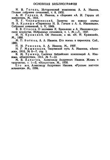 В основе этой книги лежит двутомная монография М. Алпатова «Александр Андреевич Иванов. Жизнь и творчество». Автор оставил почти B неприкосновенности биографическую линию, так ярко выведенную им в монографии, но произвел большие сокращения за счет искусствоведческого материала. Для каждого, кто захочет детально ознакомиться с творчеством художника, этот материал ценен и интересен, но он излишен для книги биографической, какою является каждая книга серии «Жизнь замечательных людей». К тому же необходимость сокращений диктовалась и желанием редакции адресовать книгу самому широкому кругу читателей.