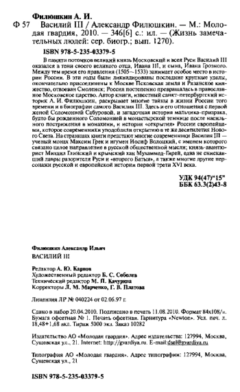 Ф 57 Василий III / Александр Филюшкин. — М.: Молодая гвардия, 2010. — 346(6] с.: ил. — (Жизнь замечательных людей: сер. биогр.; вып. 1270).