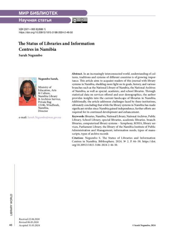 Статья: Современное состояние библиотек и информационных центров в Намибии
