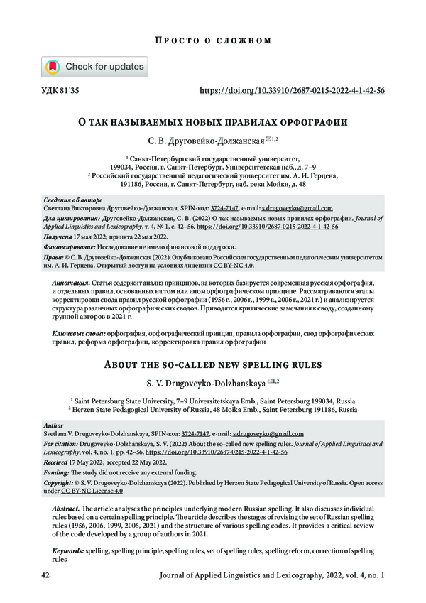 Статья содержит анализ принципов, на которых базируется современная русская орфография, и отдельных правил, основанных на том или ином орфографическом принципе. Рассматриваются этапы корректировки свода правил русской орфографии (1956 г., 2006 г., 1999 г., 2006 г., 2021 г.) и анализируется структура различных орфографических сводов. Приводятся критические замечания к своду, созданному группой авторов в 2021 г.