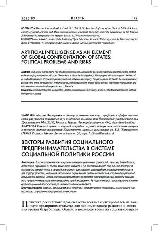 Статья: ВЕКТОРЫ РАЗВИТИЯ СОЦИАЛЬНОГО ПРЕДПРИНИМАТЕЛЬСТВА В СИСТЕМЕ СОЦИАЛЬНОЙ ПОЛИТИКИ РОССИИ
