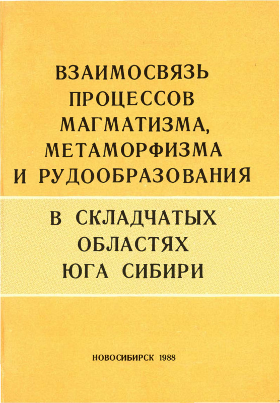 Взаимосвязь процессов магматизма, метаморфизма и рудообразования в складчатых областях юга Сибири: Сб. науч. тр. /АН СССР, Сиб. отд-ние, Ин-т геологии и геофизики. [Редкол.: Н. В. Попов (отв. ред.) и др.] Новосибирск, 1988. 146 с.