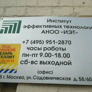«Институт эффективных технологий» - автономная некоммерческая образовательная организация, действующая с 23 сентября 2005 года. Осуществляет деятельность по изданию научных и информационно-аналитических журналов «Ценности и смыслы» и «Этап: Экономическая Теория, Анализ, Практика» (включены в перечень ВАК, российские и международные базы данных), ведет активную культурно-просветительскую деятельность.