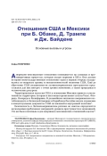 В статье рассмотрены отношения США и Мексики при президентах Б. Обаме, Д. Трампе и Дж. Байдене по основным угрозам и вызовам: миграция и экономика, преступность.